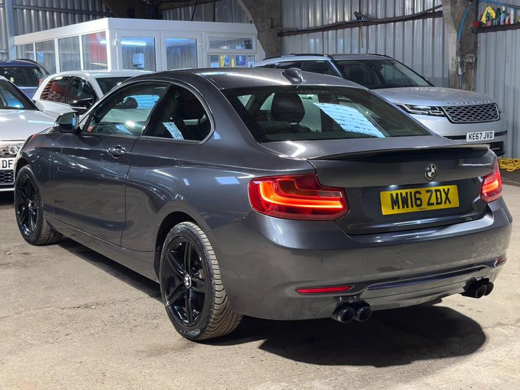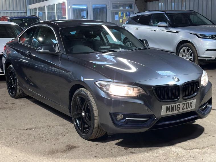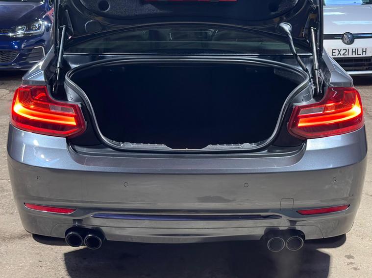 BMW 2 Series 1.5 218i Sport Euro 6 (s/s) 2dr. A very well-maintained vehicle presented in Grey. The car is ULEZ Compliant with only 2 previous owners and a full service history. It includes 17inch Alloy Wheels, Sport Trim, Modified Exhaust, Speed Limit Function, Dynamic Traction Control, DBC - Dynamic Brake Control, DSC - Dynamic Stability Control Plus, Tyre Pressure Monitoring System, Hill Start Assist, Run Flat Tyres, Rear Parking Sensors with Park Distance Control, Air Conditioning, Climate Control, Electric Windows, Multifunction Steering Wheel, Sun Protection Package, Sun Protection Glazing and a Windscreen with a Grey Shade Band, DAB Digital Radio, Enhanced Bluetooth Telephone Preparation with USB Audio Interface and Voice Control, AUX/USB Connection Ports, Isofix, Alarm System, and many more extras and luxurious features to maximise comfort. A guaranteed mileage at 63, 100. The car comes with, 6 months warranty, 12 months roadside assistance, 12 months roadside cover, drive away insurance. Car looks amazing and feels great to drive. Recently inspected by the AA with no faults. First to come will buy. UK delivery, finance options and virtual viewings are available. Please do not hesitate to contact us for any enquiries, viewings and inspections..