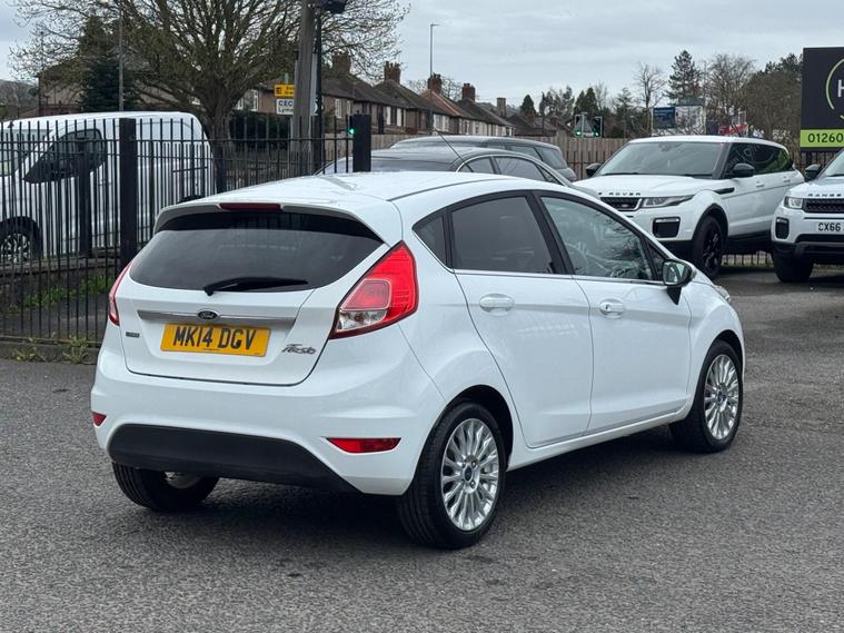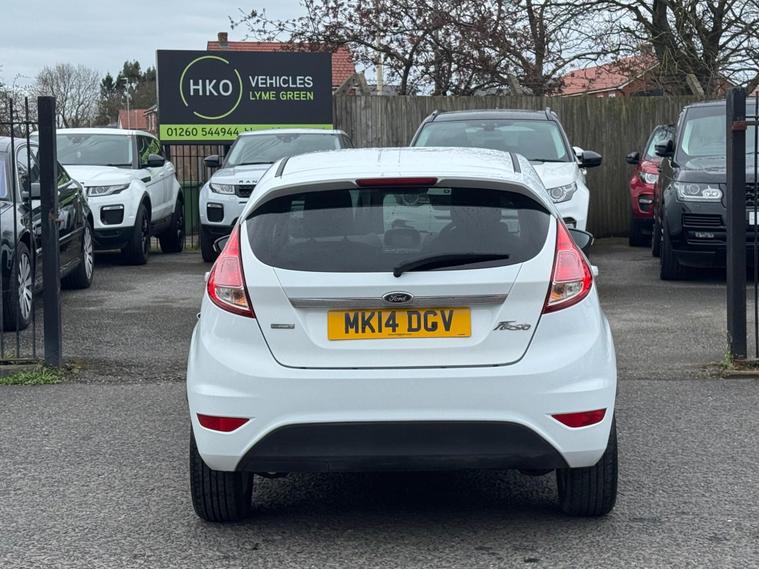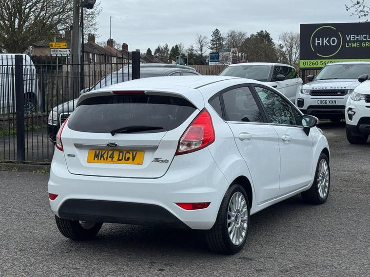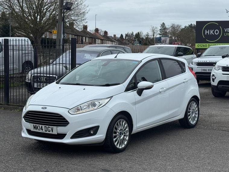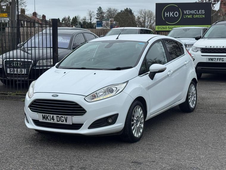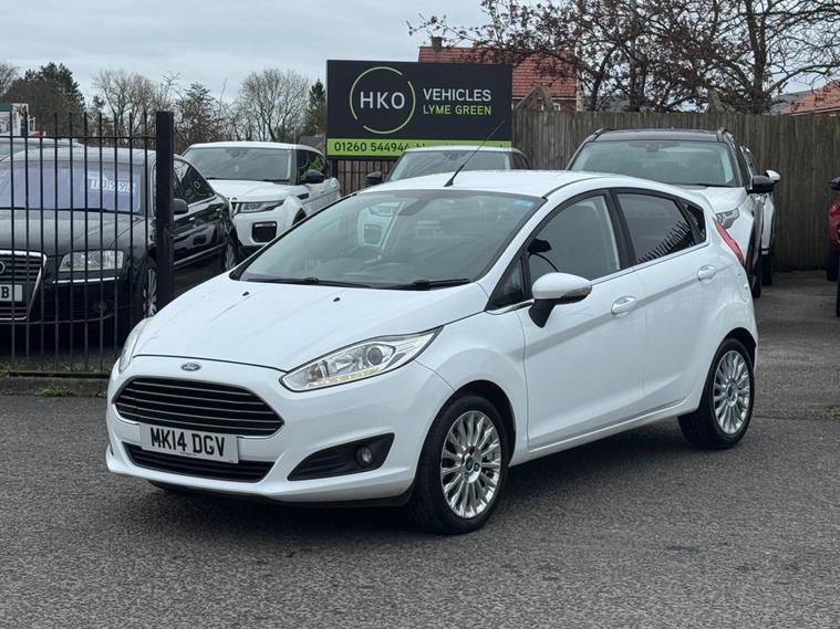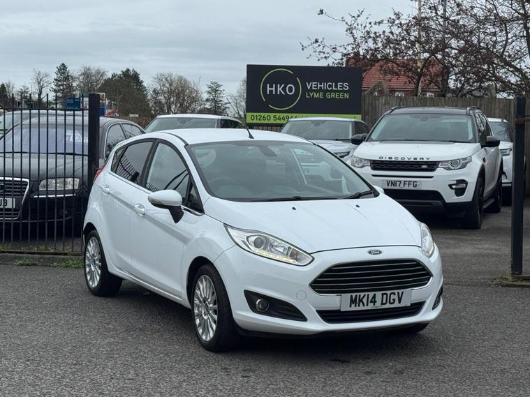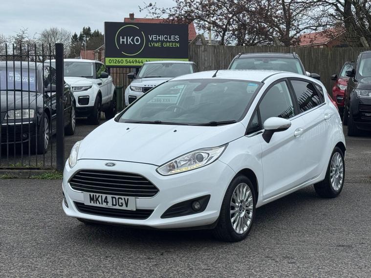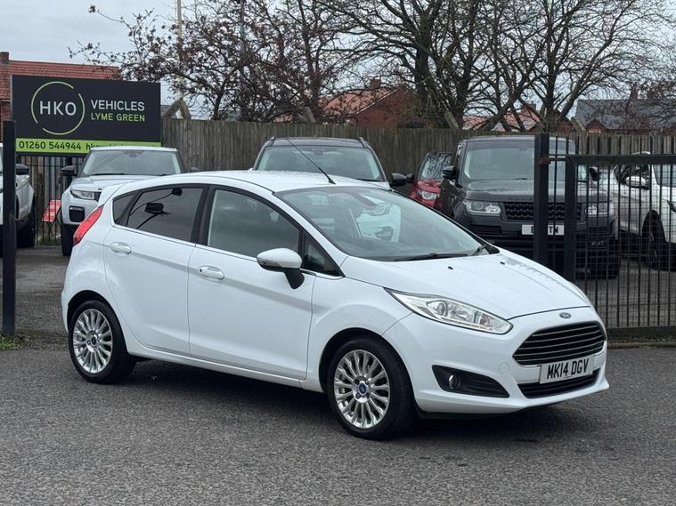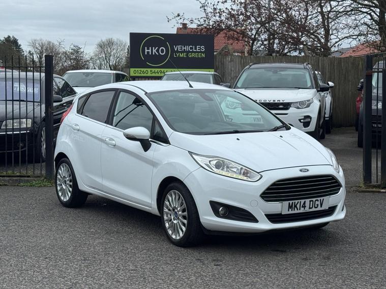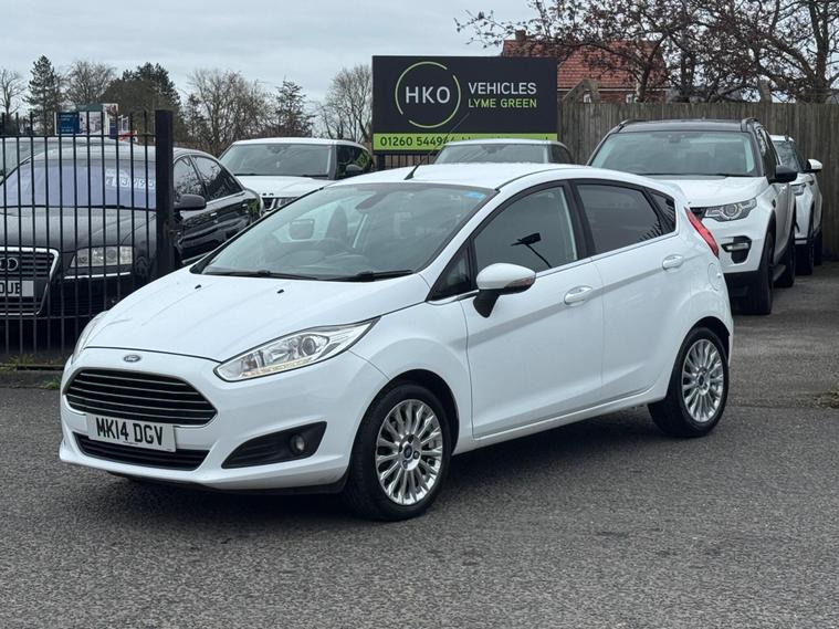 Welcome to HKO Vehicles Lyme Green – we are pleased to offer this well-presented and popular 2014 Ford Fiesta 1.0T EcoBoost Titanium, finished in crisp white and presented in great condition for its age and mileage. The Fiesta is one of the UK’s best-selling hatchbacks, known for its reliability, low running costs, and enjoyable driving experience.This vehicle has covered 83, 000 miles and is powered by the efficient and responsive 1.0 EcoBoost petrol engine producing 125ps, paired with a manual gearbox. It offers excellent fuel economy while still delivering a smooth and lively drive, making it ideal for both city and motorway use.As the higher-spec Titanium model, this Fiesta comes with a great level of factory equipment, including: • Alloy wheels • Climate control • Bluetooth connectivity with voice control • DAB radio • USB and AUX connectivity • Cruise control and speed limiter • Heated front windscreen • Automatic headlights • Rain-sensing wipers • Multi-function steering wheel • Electric windows and mirrorsThe Fiesta is well known for its comfortable ride, compact size, and practical interior, making it an ideal first car or economical daily driver.This vehicle will be supplied with a 12 Months MOT and includes a 3 Months Warranty for added peace of mind.We are proud to be an AA Approved Dealer, ensuring all vehicles are thoroughly inspected and prepared to the highest standard prior to sale.Finance available with same day decision – please apply via our website or call us on (01260) 544944 to discuss a tailored finance package.A fantastic opportunity to own a reliable and economical Ford Fiesta Titanium, offering comfort, efficiency, and great value. Contact HKO Vehicles Lyme Green today to arrange a viewing or test drive..