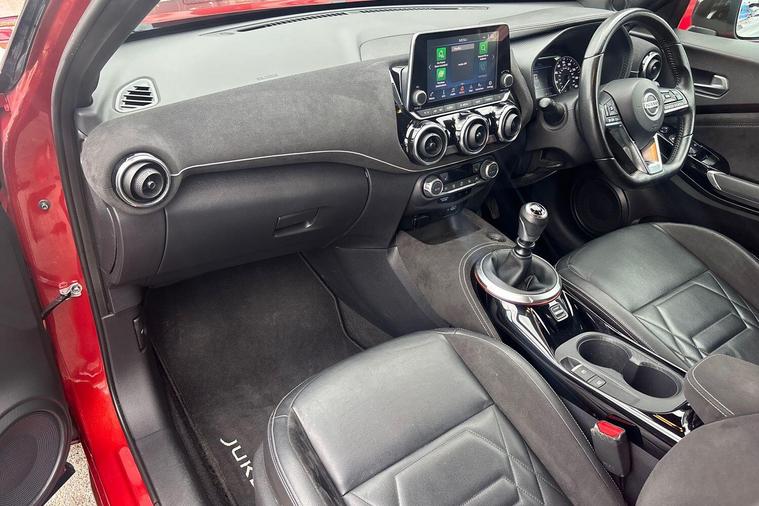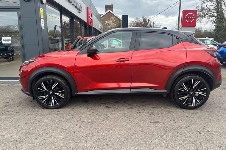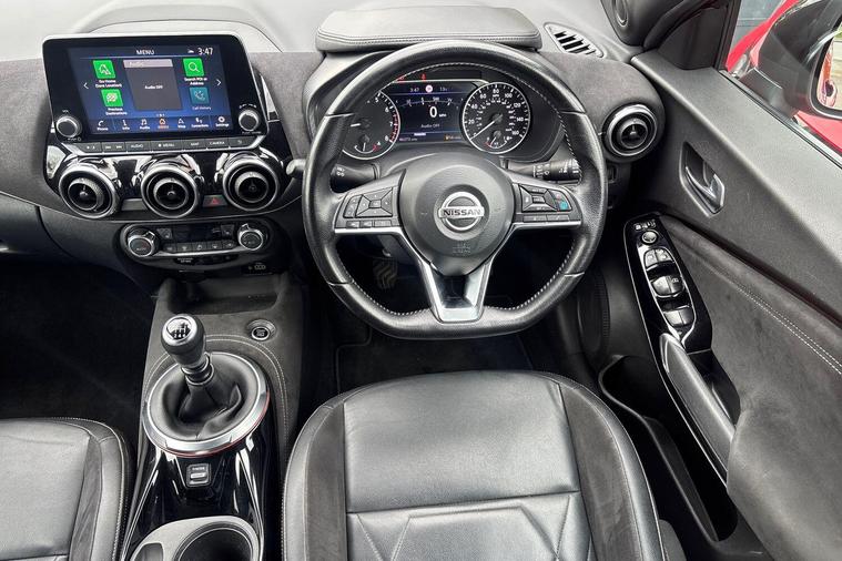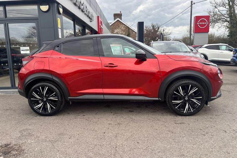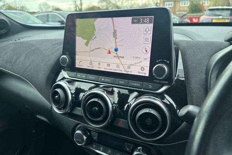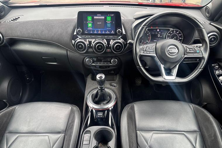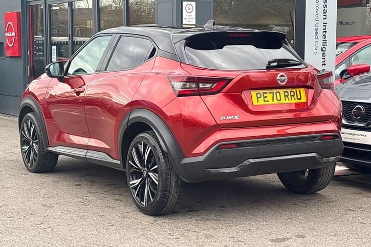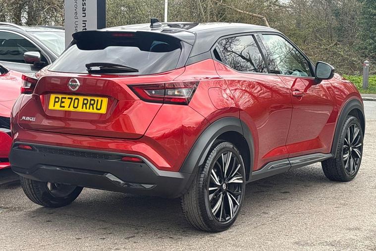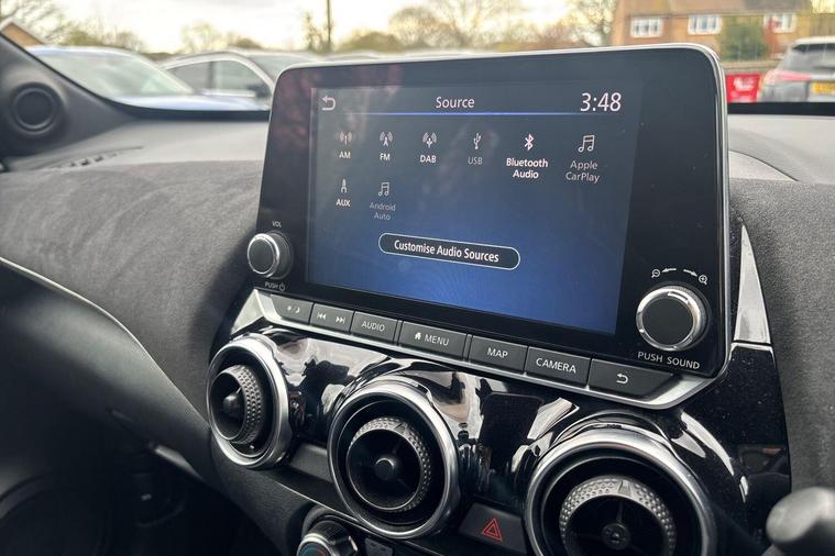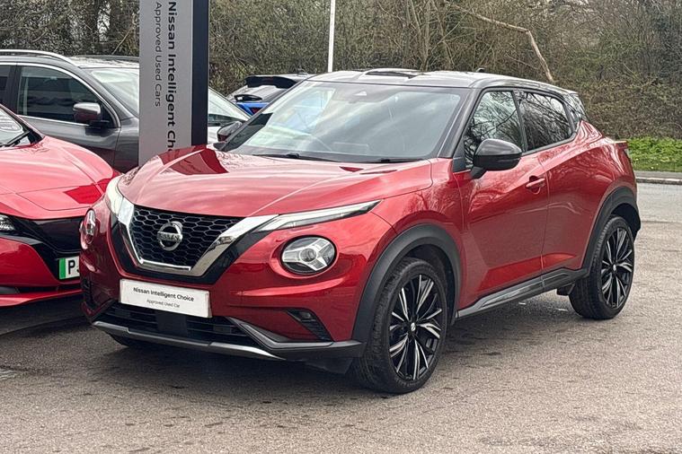 This 2020 Nissan Juke DIG-T Tekna+ is a Nissan manufacturer approved vehicle, offering peace of mind with its proven history. It features a responsive 1.0 litre petrol engine and meets Euro 6 emissions standards. Inside, you'll find automatic air conditioning with climate control, a premium Bose Personal Plus audio system, and LED headlights for excellent visibility. Connectivity is made easy with USB, AUX, and Bluetooth options, while the Advanced Safety Shield Pack includes blind spot assistance, adaptive cruise control, and a 360 degree camera for effortless parking.This Juke DIG-T Tekna+ is designed to offer an enhanced driving experience. Its fuel economy of 46 mpg highlights its efficiency, making it a cost effective choice for your journeys. Furthermore, its low CO2 emissions indicate a more environmentally conscious performance compared to many other vehicles in its class..