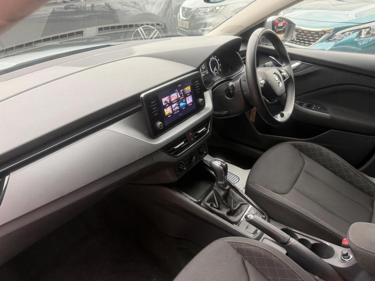 This 2021 Skoda Scala TSI SE offers a blend of practicality and modern technology, making it a sensible choice for everyday driving. Powered by an efficient 1.0 litre Euro 6 compliant petrol engine, this manual transmission vehicle is registered in 2021 and presents itself in the SE trim. It comes equipped with essential features designed to enhance your driving experience, including basic LED headlights with distinctive LED daytime running lights for improved visibility.The Scala TSI SE ensures connectivity and convenience with its SmartLink system, compatible with both Android Auto and Apple CarPlay, allowing seamless integration of your smartphone. Parking is made easier thanks to the rear parking sensors, and you can maintain a comfortable cabin temperature with the manual air conditioning and pollen filter. The Rain and Light Assistant, along with an auto dimming rear view mirror, automatically adjusts to changing conditions. This model also boasts a notably large boot space, perfect for luggage or shopping, and achieves a brisk 0 to 60 miles per hour in just 9.7 seconds, demonstrating its responsive performance..