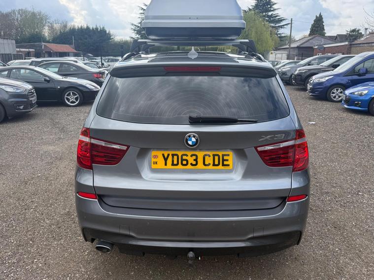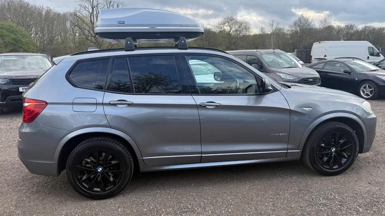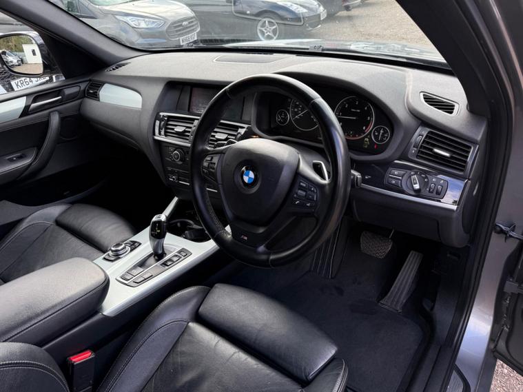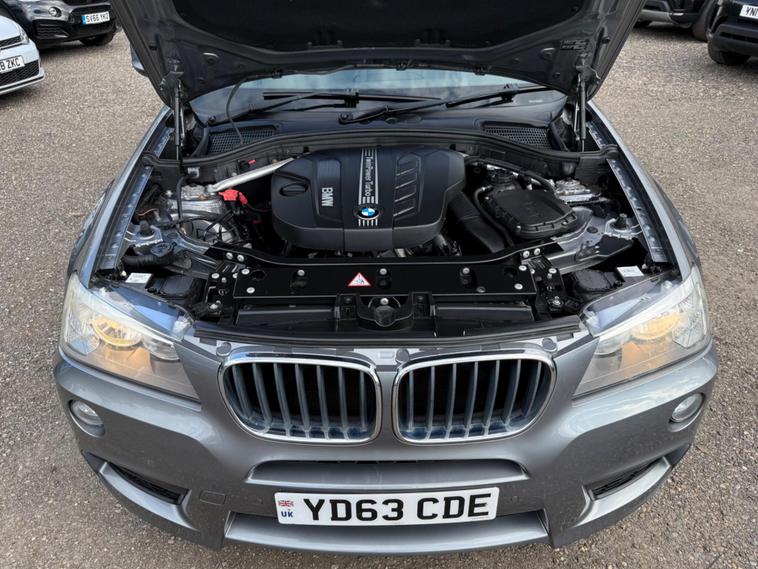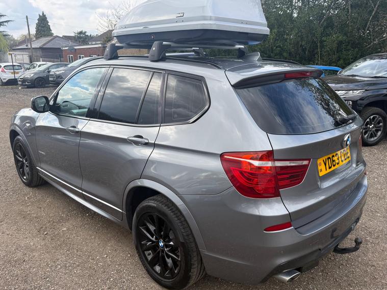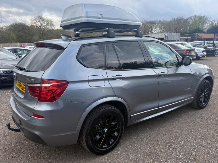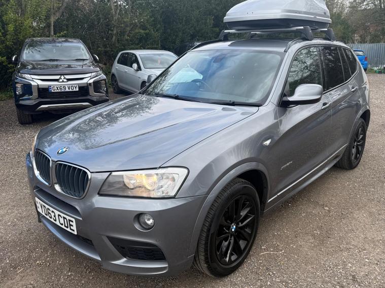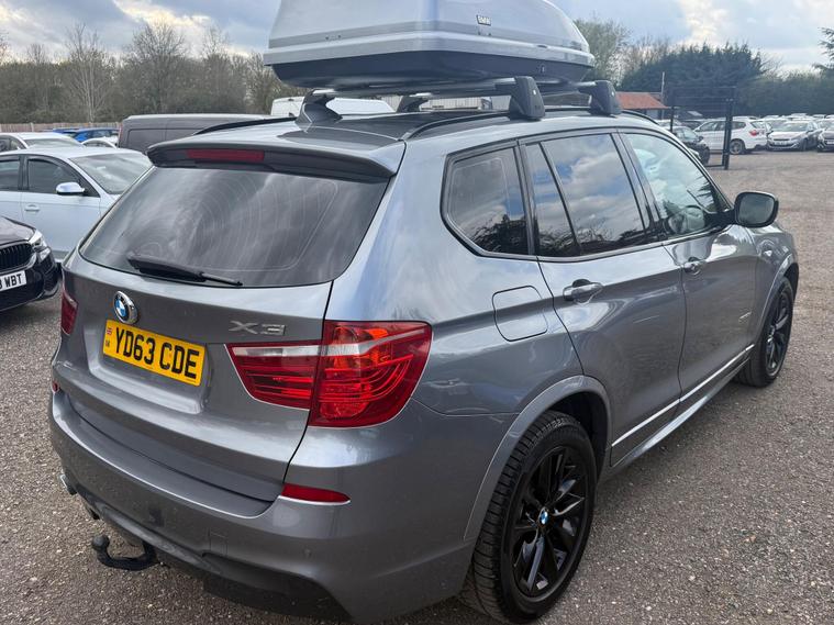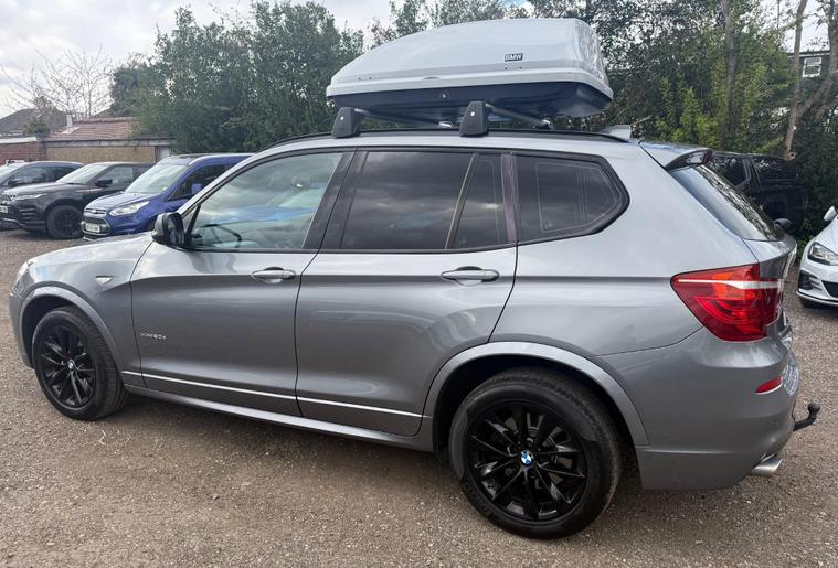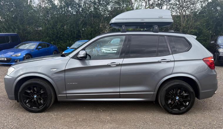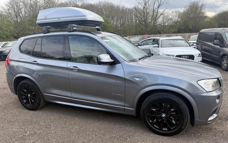 FULL UP TO DATE SERVICE HISTORY LOTS OF PAPERWORK/OLD MOT’S ETC, 2KEYS, PRO MEDIA NAV, FULL LEATHER, CRUISE, BLACK PACK INC WHEELS, DETACHABLE TOW BAR, GENUINE BMW ROOF BARS + STORAGE BOX WITH LOCKING KEYS, PRIVACY GLASS, FRONT AND REAR PARK SENSORS IN LOVELY CONDITION BOTH INSIDE AND OUT, VIEWING BY APPOINTMENT ONLY, ANY PX CONSIDERED, 3 MONTHS WARRANTY AS STANDARD WITH OPTIONS TO EXTEND, FCA REGULATED ALL IN HOUSE FINANCE ARRANGED.This 2013 BMW X3 20d M Sport boasts a clear vehicle history, offering peace of mind alongside its impressive capabilities. This four wheel drive model features a 2.0L diesel engine and is presented in the desirable M Sport trim. It comes equipped with the Media Package and Navigation System BMW Professional, along with convenient features like Concierge Service, Remote Services, and automatic headlights.With a fuel economy of 50 mpg, this X3 offers excellent running costs, further enhanced by its low CO2 emissions. Its acceleration from 0 to 62 mph in just 8.5 seconds demonstrates its responsive performance, while the large boot space provides ample practicality for all your needs. The impressive towing weight of 2400 kg also highlights its versatility, making it a capable choice for a variety of uses..