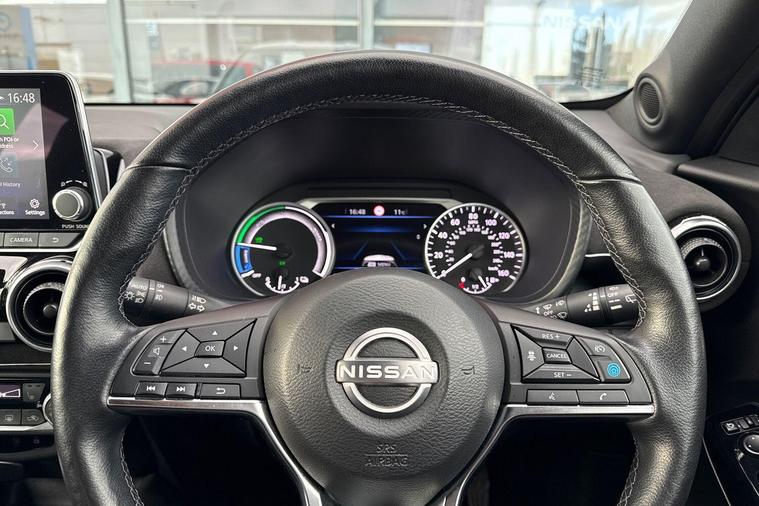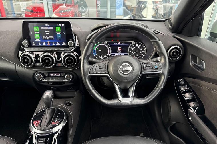 This 2023 Nissan Juke Tekna+ presents an exceptional ownership proposition with its full dealership service history and just one owner from new. This Euro 6 compliant 1.6 litre petrol hybrid model boasts an MOT valid until June 2026, and as a Nissan manufacturer approved vehicle, it has been meticulously maintained, with its last service performed on 2025-06-10 at 9439 miles. The Juke Tekna+ comes equipped with convenient features such as Apple CarPlay and Google Android Auto integration, alongside an Intelligent Key system offering keyless entry, walk away lock, and approach unlock functions.With only 13681 miles on the clock, this Juke is remarkably low mileage for its age, indicating it has been lightly used. Its fuel economy is a standout feature, achieving an impressive 57 mpg, which, along with its low CO2 emissions and low insurance group, demonstrates how this vehicle offers a more economical and cost effective driving experience compared to many others in its class..
