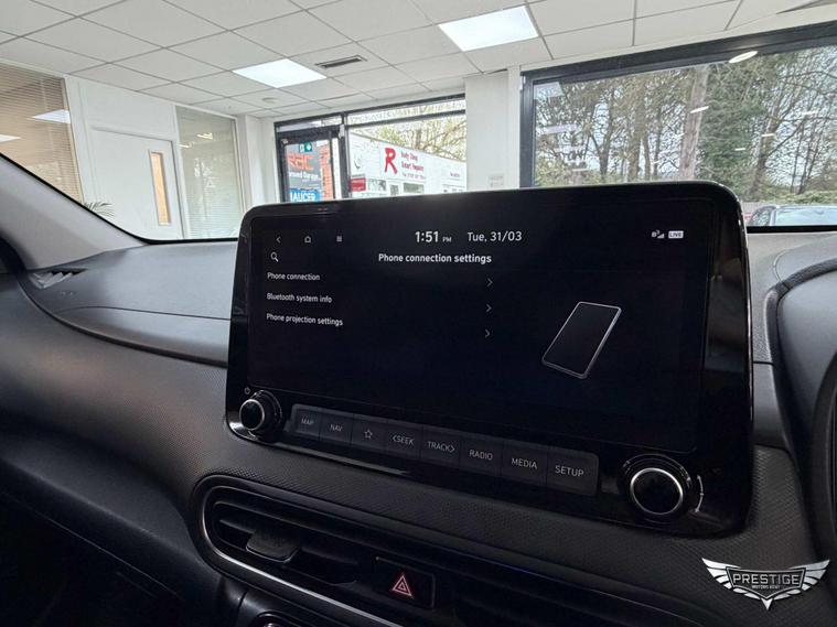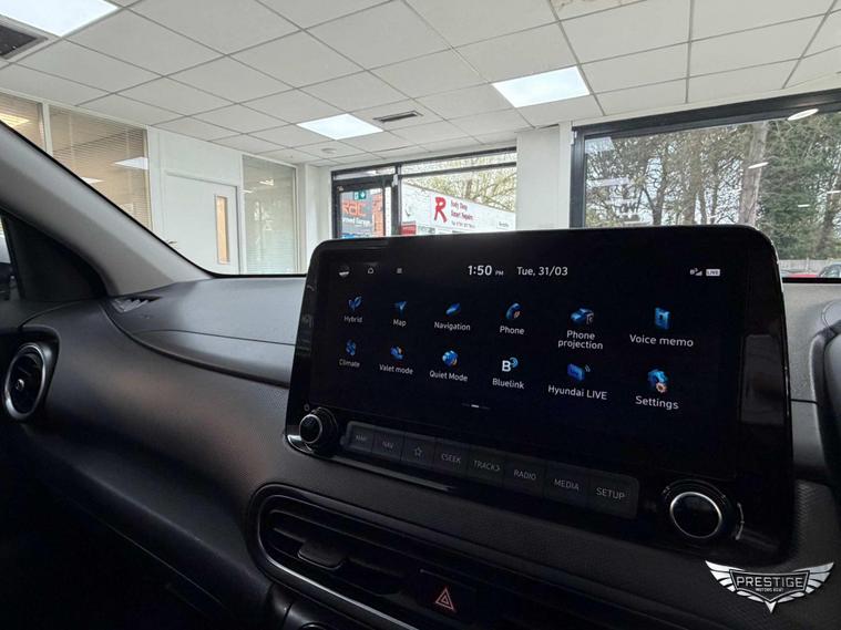 With a full dealership service history and MOT valid until July 2026, this 2021 Hyundai KONA h GDi Premium offers excellent provenance. This Euro 6-compliant, 1.6-litre petrol hybrid model comes with a clear vehicle history check and has had its last service at 35, 797 miles. Key features include front and rear parking sensors, climate control air conditioning, and a smart key with keyless entry and an engine start-stop button. Stay connected on the go with Apple CarPlay integration.This Hyundai KONA stands out with its impressive fuel economy, achieving up to 57 miles per gallon, which is better than many similar vehicles. Its low CO2 emissions and low insurance group also contribute to lower running costs, making it a more economical choice. A 3-month warranty is included for your peace of mind.Every vehicle undergoes a comprehensive multi-point mechanical inspection, comes with a 3-month warranty and AA breakdown cover and receives a professional valet. All our cars are HPI-checked, so you can buy with confidence.Our cars are pre-delivery inspected and ready to drive away. While we try to ensure the accuracy of information, specifications may differ. Please confirm any specific features with your sales executive before making a decision.Please note: A £300 non-refundable admin fee applies when using third-party external finance providers. We are conveniently located just 2 miles from Junction 4 on the M25..