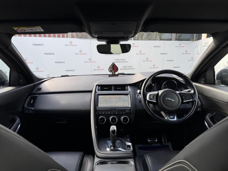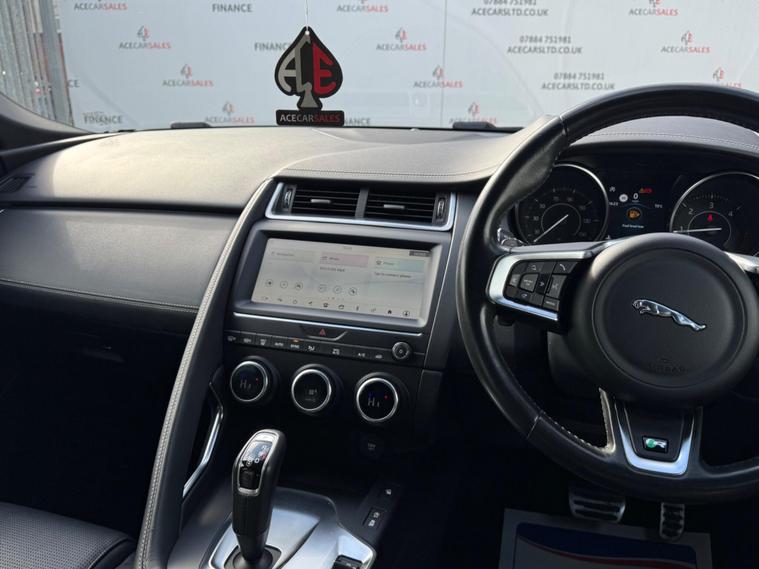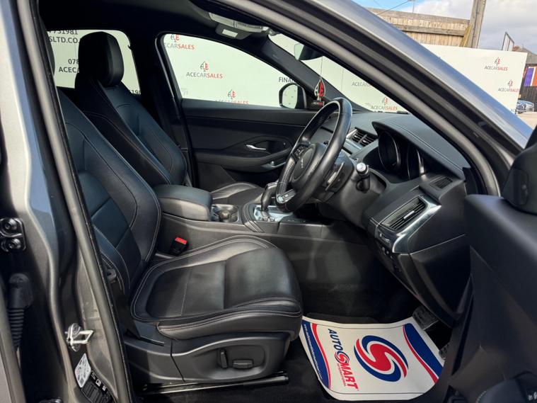 FINANCE & PCP AVAILABLE, COMPLEMENTARY WARRANTY INCLUDED, GOOD CONDITION, WE TAKE PART EXCHANGE! Jaguar E-PACE 2.0 D180 R-Dynamic S Auto AWD Euro 6 (s/s) 5dr. HPI Clear, Full Service History, 8 Months MOT, 1 Owner, 2 Keys, EURO6 ULEZ Compliant, Park Pack, Connect Pro Pack, Smartphone Pack, Keyless Start, Cruise Control, Speed Limiter Function, Reverse Camera, 360 Degree Parking Aid, Parking Sensors, Lane Keep Assist, Collision Avoidance, Automatic Emergency Braking, Traffic Sign Recognition with Adaptive Speed Limiter, Driver Condition Monitor, All Surface Progress Control, Low Traction Launch, Hill Launch Assist, All Wheel Drive, JaguarDrive Control Dynamic/Comfort/ECO/Rain-Ice-Snow, Sports Gearbox Mode, Manual Shifting Function, Paddle Shifts, Electric Power Assisted Steering, Start/Stop Function, Emergency Brake Assist, Traction Control, Torque Vectoring by Braking, Cornering Brake Control, Anti-locking Braking System, Electronic Brake-Force Distribution, Dynamic Stability Control, Trailer Stability Assist, Tyre Pressure Monitoring System, Headlights - Automatic, LED Headlights with Signature Daytime Running Lights, Auto High Beam Assist, LED Tail Lights, Rain Sensing Windscreen Wipers, Electric Windows, Electric Mirrors, Powerfolding Mirrors, Electric Functioned Front Seats, Automatic Dual Zone Climate Control, Air Conditioning, Front Heated Screen, Rear Screen Demister, Colour Touchscreen Media Interface, Drivers Infomation Display Cluster, Apple Carplay/Android Auto, Navigation, Traffic Information, Bluetooth, Radio, DAB, AUX, USB, Telephone Connection, Voice Control, Multifunctional Steering Wheel, Full Black Leather Seats, R-Dynamic Design Door Sills, Exterior Badging, Privacy Glass, 19inch Alloy Wheels.ALL VEHICLES ARE FULLY INSPECTED PRIOR TO SALE. Feel free to enquire about our competitive Financial packages. We can assist you in securing finance for your New car with ease- regardless of your credit status/history. We include a COMPLEMENTARY WARRANTY on all our vehicles. Buy With Confidence At Ace Car Sales'.