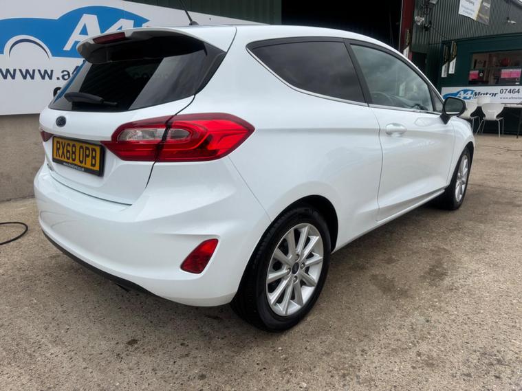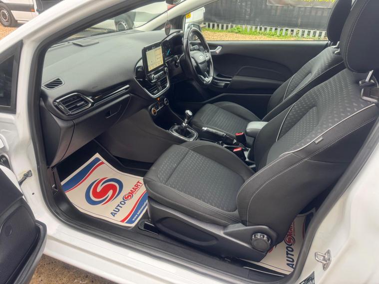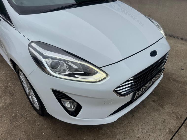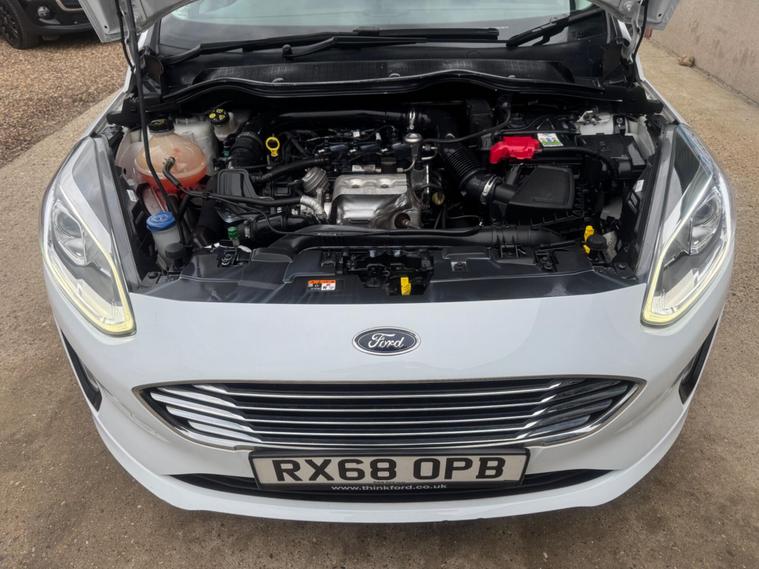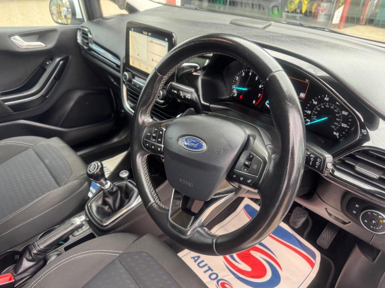 With an MOT valid until January 2027 and a full service history, this 2019 Ford Fiesta T Titanium offers excellent peace of mind. This Euro 6 compliant 1.0L petrol model boasts a clear vehicle history check and comes with an 18 month warranty for added reassurance. The Titanium trim level includes desirable features such as automatic on off and highbeam headlights, electronic automatic temperature control for a comfortable cabin environment, and the Ford Navigation System with Ford SYNC 3, which seamlessly integrates Apple CarPlay and Android Auto.This Ford Fiesta stands out with its low CO2 emissions, making it an environmentally conscious choice. Its performance is also noteworthy, achieving 0-62mph in just 10.0 seconds, indicating a responsive driving experience compared to other vehicles in its class. The inclusion of FordPass Connect further enhances its modern appeal, offering advanced connectivity options..