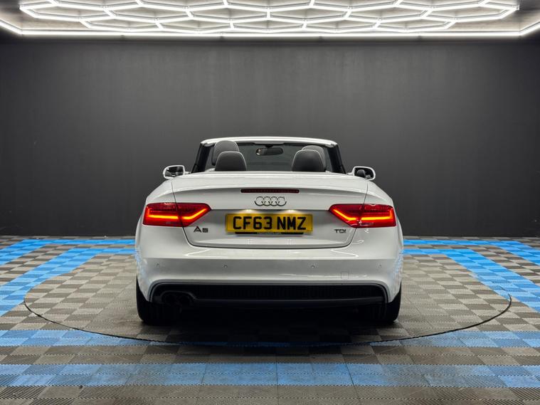 Here at Motor Gurus we are delighted to offer a Audi A5 Cabriolet 2.0 TDI S line Special Edition. This vehicle is in very good condition when taking into consideration the vehicle's age and mileage. This specific vehicle is finished in a GLOSS WHITE and is contrasted by a BLACK LEATHER interior. This vehicle comes included with: BLACK SOFT TOP ROOF, REAR PARKING SENSORS, HEATED SIDE MIRRORS, FRONT HEATED SEATS, WARM AIR COLLAR, BANG & OLUFSEN SOUND SYSTEM, PERFORATED GRIPPED LEATHER STEERING WHEEL, CRUISE CONTROL, AUTOMATIC HEADLIGHTS, TWIN CUPHOLDERS, CLIMATE CONTROL, DAB RADIO, BLUETOOTH AUDIO, TELEPHONE CONNECTIVITY AND MUCH MORE! Our Audi A5 Cabriolet 2.0 TDI S line Special Edition has come to us with SERVICE HISTORY and 2 KEYS! We will also provide a 12 MONTH MOT and a FRESH OIL SERVICE before it leaves our premises (OTR)..