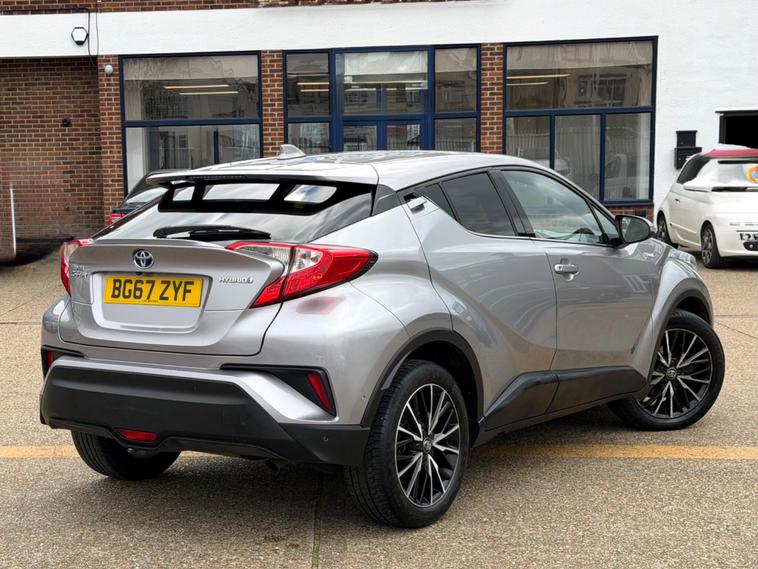 This 2017 Toyota C-HR VVT-h Excel is presented with a clear vehicle history check, offering you peace of mind. This stylish hatchback features a 1.8L petrol hybrid engine, meeting Euro 6 emissions standards. It comes equipped with the desirable Protection Pack, Leather Pack, and Accent Pack in Havanna Brown, enhancing its appeal. Convenience is key with the Smart Entry and Push Button Start System, allowing for keyless entry, and Bluetooth connectivity for seamless phone integration.The Toyota C-HR Excel stands out with impressive fuel economy, achieving up to 72 mpg, which indicates it is more economical than many similar vehicles. Furthermore, its low insurance group and low CO2 emissions highlight its cost effectiveness and environmental consideration, making it a sensible choice for many drivers..