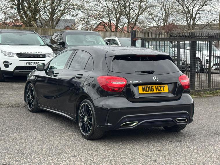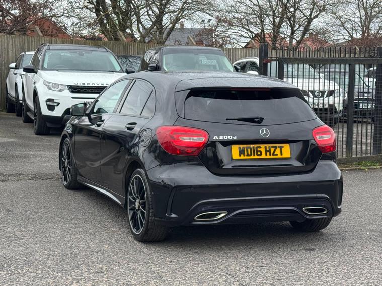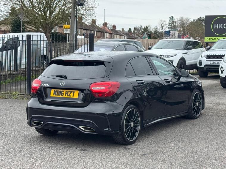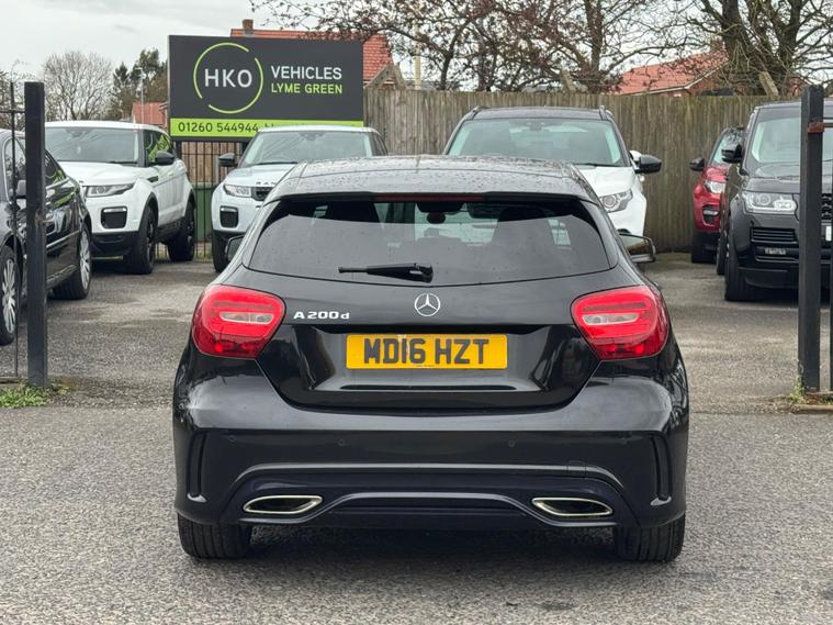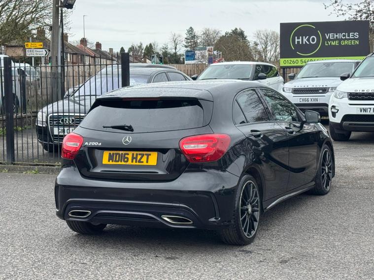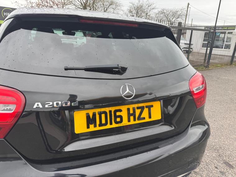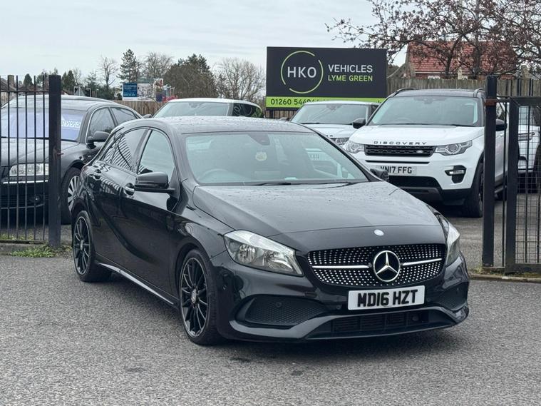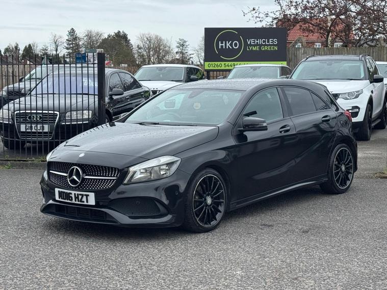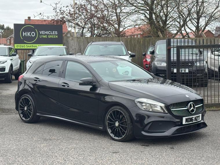 Welcome to HKO Vehicles Lyme Green – we are pleased to offer this stylish and well-equipped 2016 Mercedes-Benz A Class A200d AMG Line Executive, finished in sleek black and presented in good condition throughout. This premium hatchback combines sporty AMG styling with comfort, efficiency, and everyday practicality.This vehicle has covered 105, 000 miles and is powered by the efficient and reliable 2.1 diesel engine producing 136ps, paired with a manual gearbox, delivering excellent fuel economy and a smooth driving experience. Being Euro 6 compliant, it meets modern emission standards.As the desirable AMG Line Executive specification, this A-Class benefits from a strong level of factory equipment and sporty styling, including: • AMG Line exterior styling package • AMG alloy wheels • Sports interior with part leather trim • Sports seats • Satellite navigation system • Colour infotainment display • Bluetooth connectivity • Cruise control and speed limiter • Air conditioning • Multi-function steering wheel • Automatic headlights • LED daytime running lightsThe A-Class offers a premium feel, comfortable driving position, and sharp styling, making it a great choice for both new and experienced drivers.This vehicle will be supplied with a 12 Months MOT and includes a 3 Months Warranty for added peace of mind.We are proud to be an AA Approved Dealer, ensuring all vehicles are thoroughly inspected and prepared to the highest standard prior to sale.Finance available at competitive rates with same-day decision and drive away today – please apply via our website or call us on (01260) 544944 to discuss a tailored finance package.A fantastic opportunity to own a well-presented Mercedes-Benz A200d AMG Line Executive, offering style, efficiency, and premium quality. Contact HKO Vehicles Lyme Green today to arrange a viewing or test drive..