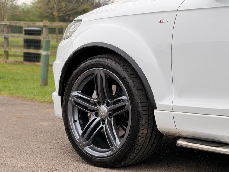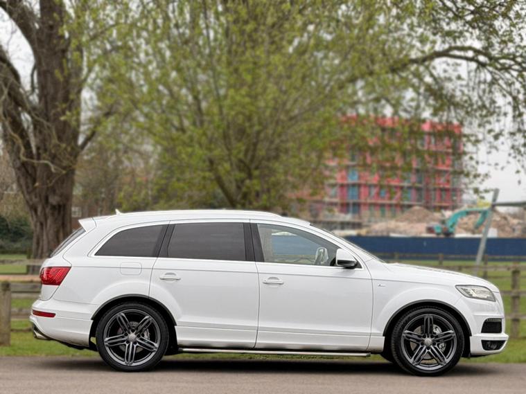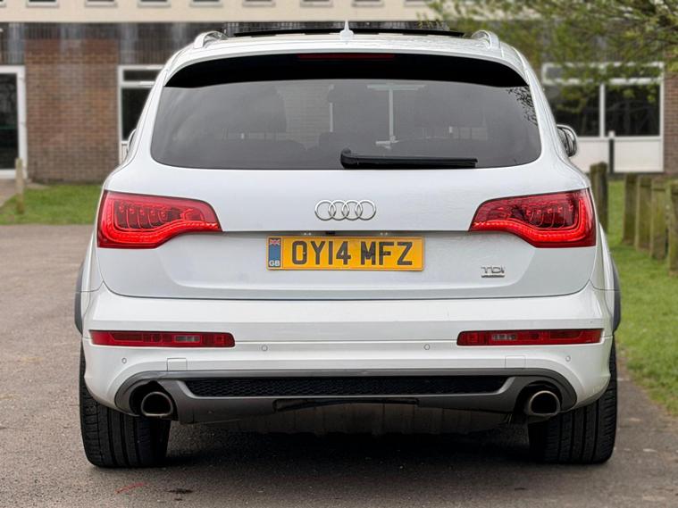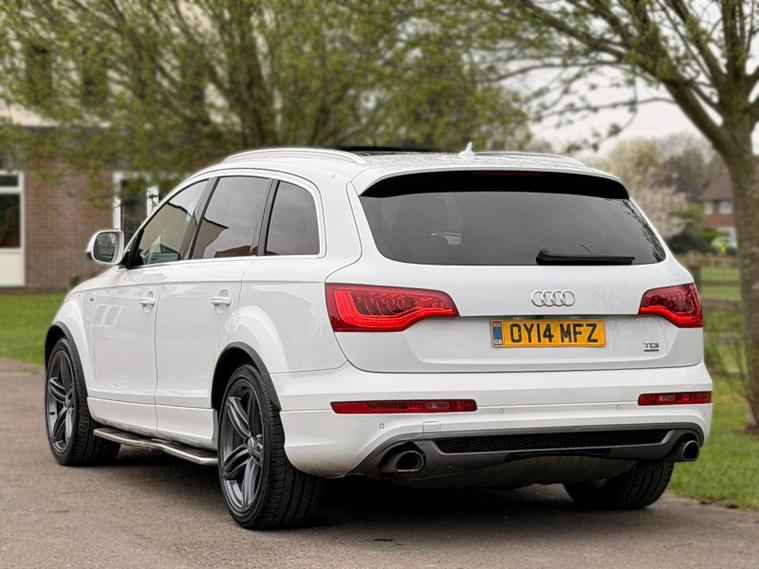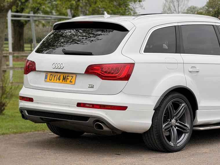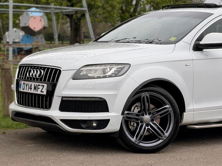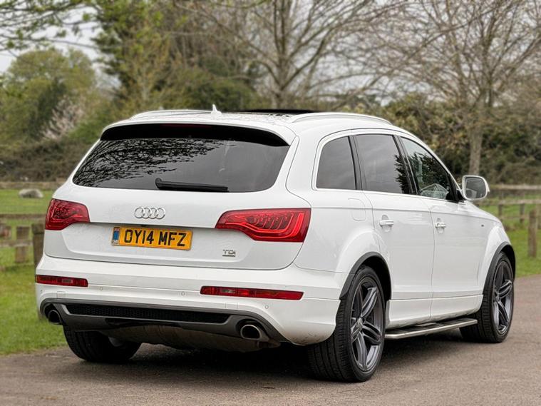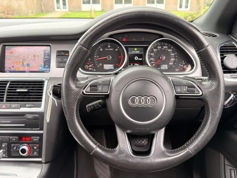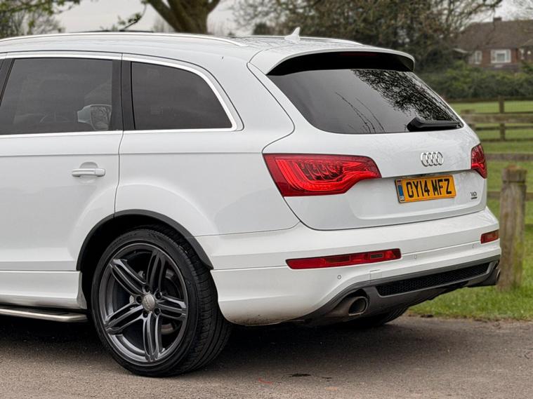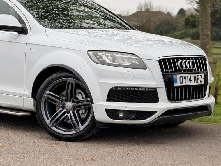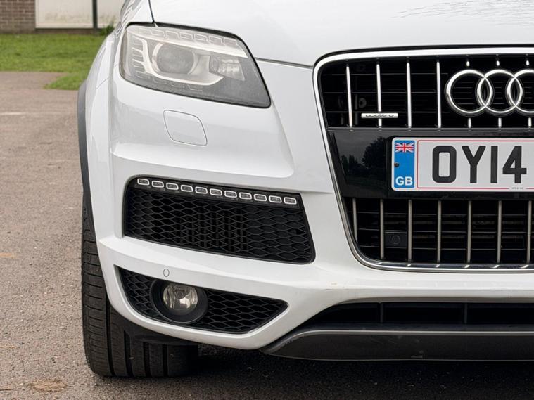 This 2014 Audi Q7 TDI V6 S line Plus offers a compelling blend of luxury and practicality, boasting a powerful 3.0L Diesel engine and Audi's renowned Four Wheel Drive system for confident handling in all conditions. With seating for seven, this spacious SUV is ideal for families, and its impressive 3200 kg towing weight makes it a capable companion for larger loads. Inside, you'll find a host of desirable features including privacy glass with double glazing for a quieter cabin, and the Audi Parking System Rear with acoustic indicators to assist with manoeuvring. Stay comfortable with dual zone electronic climate control and enjoy the convenience of mobile telephone preparation with Audi Connect, including Bluetooth connectivity. The heated front seats ensure a pleasant driving experience, even on colder days.The Q7 TDI V6 S line Plus stands out with its brisk acceleration, reaching 0-62mph in just 7.8 seconds, demonstrating its strong performance capabilities. This particular model also benefits from a low insurance group, offering potential savings for owners. These highlights indicate that this Audi Q7 provides a superior driving experience and ownership proposition compared to many other vehicles in its class, combining performance, comfort, and advanced technology in a sophisticated package..