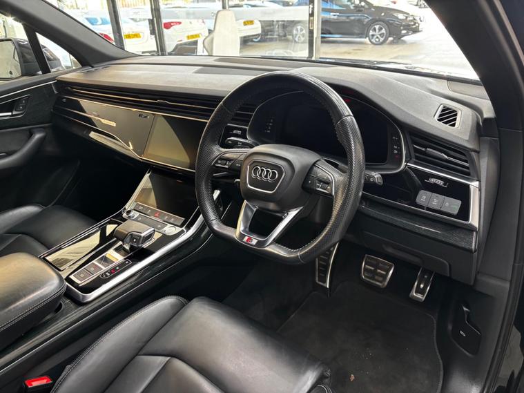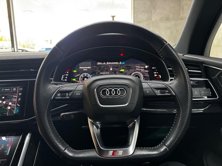 This 2019 Audi Q7 TDI V6 Black Edition boasts a clear vehicle history, offering peace of mind alongside its impressive specifications. This four wheel drive model features a powerful 3.0 litre diesel engine and comfortably seats seven occupants. The Black Edition trim enhances its sophisticated appearance, while the Euro 6 emission class ensures compliance with current standards. Notable features include Audi Matrix LED headlights with dynamic indicators, a rear view camera with parking assistance, and the Audi Phone Box with wireless charging. For added convenience, it also comes equipped with deluxe four zone automatic climate control and Audi Parking System Plus, which includes front and rear sensors.The Audi Q7 TDI V6 Black Edition offers a compelling blend of performance and practicality. Its acceleration from 0 to 62mph in just 7.3 seconds demonstrates its dynamic capability, a performance advantage over many similar vehicles. Furthermore, its substantial towing weight of 3500 kg makes it exceptionally versatile for a variety of needs. The generous boot space provides ample room for luggage or shopping, setting it apart from other SUVs. This model also benefits from a low insurance group, indicating that running costs are kept more manageable compared to comparable vehicles..