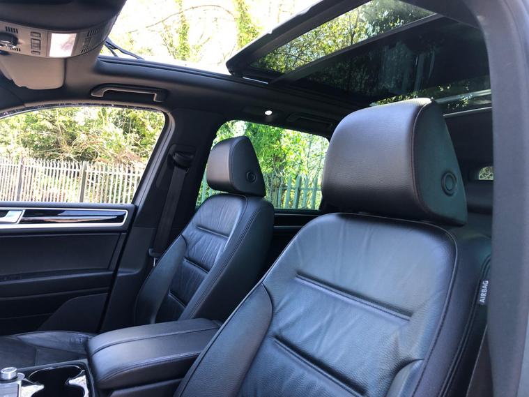 This 2015 Volkswagen Touareg TDI V6 R Line boasts a full service history, with its last service completed on 1st April 2026, and an MOT valid until March 2027, offering excellent peace of mind. This capable Four Wheel Drive SUV is powered by a robust 3.0 litre diesel engine, meeting Euro 6 emissions standards. The R Line trim level enhances its appeal, and you'll appreciate the convenience of keyless entry, Bi-Xenon headlights for superior visibility, and a panoramic electric sliding glass sunroof that floods the cabin with light. Inside, enjoy the comfort of heated front seats and the ease of 2 Zone electronic climate control with automatic air recirculation, ensuring a pleasant environment for all occupants.The Touareg TDI V6 R Line offers impressive performance, accelerating from 0 to 62 miles per hour in just 7.3 seconds, demonstrating its dynamic capabilities. This vehicle also stands out with its substantial towing weight of 3500 kg, making it ideal for those needing to tow caravans or trailers. Furthermore, its large boot space provides ample room for luggage or shopping, a practical advantage over many similar vehicles. The Touareg also benefits from a low insurance group, which can help to reduce your running costs compared to other SUVs in its class..