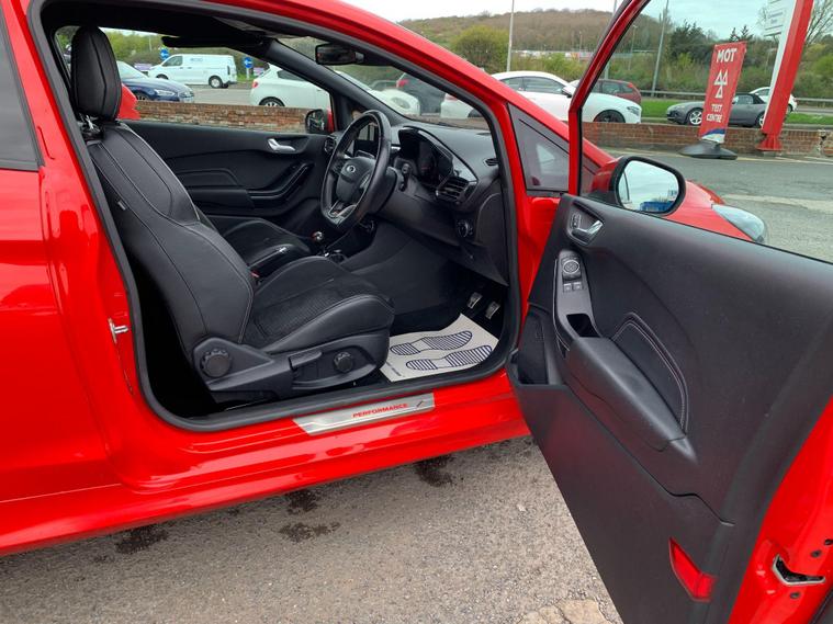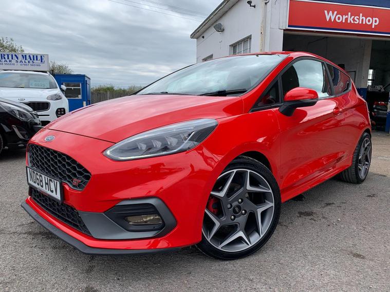 This 2018 Ford Fiesta ST-3 boasts exceptionally low mileage for its age, having covered just 52, 000 miles. This sporty hatchback is powered by a dynamic 1.5L Petrol Engine, meeting Euro 6 emission standards. It comes with a 3 month warranty for your peace of mind. Key features include the convenient Ford KeyFree System for keyless entry, automatic on-off headlights, and electronic automatic temperature control for a comfortable cabin environment. The ST-3 trim also benefits from a Driver Assistance Pack, which includes adaptive cruise control, and an NCAP Pack for enhanced safety.Experience exhilarating performance with this Fiesta ST-3, capable of accelerating from 0-62mph in a swift 6.5 seconds. This impressive acceleration highlights its sporting credentials, offering a more engaging driving experience compared to many other vehicles in its class. The combination of its sporty design, advanced features, and strong performance makes this 2018 Ford Fiesta ST-3 a compelling choice for those seeking a thrilling yet practical car..