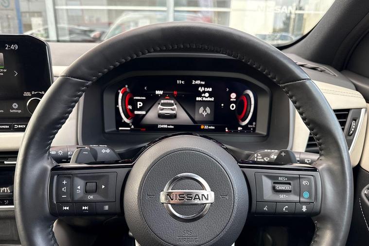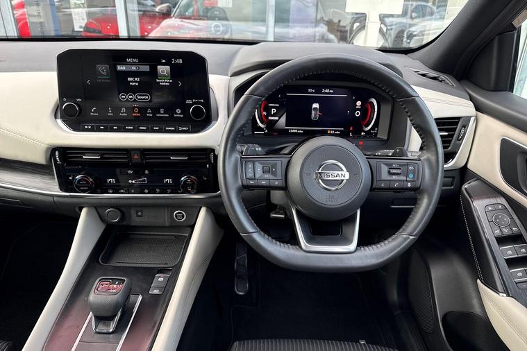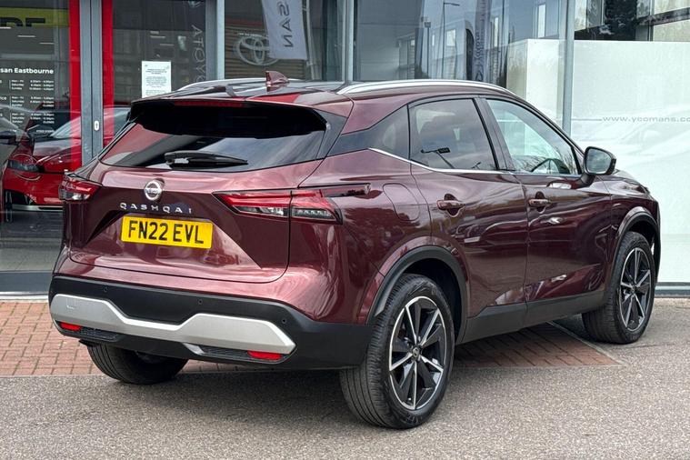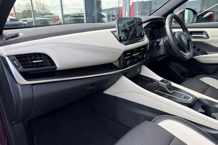 This 2022 Nissan Qashqai DIG-T Tekna boasts an exceptional provenance, having been meticulously maintained with a full dealership service history and remaining manufacturer approved. With only one owner and a low mileage of just 23, 498 miles, this Euro 6 compliant 1.3L Petrol Hybrid is in excellent condition, featuring MOT valid until February 2027. The Tekna trim level comes equipped with advanced technology, including front and rear parking sensors with parking assistance, automatic dusk sensing headlights, and an Intelligent Around View Monitor providing a 360 degree camera for effortless parking. Safety is further enhanced by Intelligent Blind Spot Intervention and Blind Spot Warning systems.This Qashqai stands out with its generous boot space, offering ample room for all your needs, and its position within a low insurance group makes it an economical choice. The low mileage for its age, coupled with its comprehensive service history and manufacturer approval, indicates that this vehicle has been exceptionally well cared for, offering a superior ownership experience compared to many others on the market..