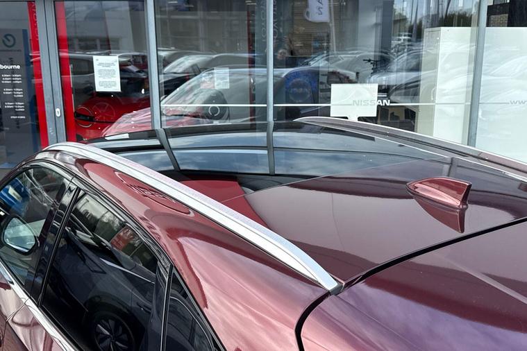 - Fixed panoramic glass roof with electric sunshade