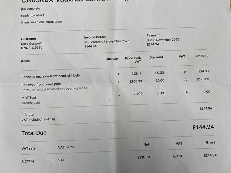 - Handbrake On - Low Brake Fluid Level - Low Fuel Level Warning Lights