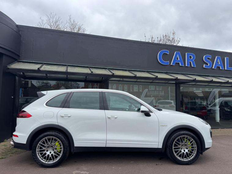 This 2014 Porsche Cayenne V6 E-Hybrid S is a remarkable example, boasting a single owner from new and a low mileage of just 80, 000 miles for its age. This four wheel drive model features a 3.0L petrol plug in hybrid engine, meeting Euro 6 emissions standards. It comes with a 3 month warranty and a 12 month MOT provided on purchase, alongside partial service history, with the last service completed at 80, 000 miles on 2nd April 2026. Notable features include LED headlights with Porsche Dynamic Light System Plus (PDLS Plus) and Bi-Xenon headlights with Porsche Dynamic Light System (PDLS), adaptive cruise control with Porsche Active Safe, and Porsche Entry for keyless access. The car also benefits from a telephone module with Bluetooth connectivity.The Cayenne S offers an impressive 0-62mph acceleration time of just 5.9 seconds, showcasing its dynamic performance. This acceleration figure is notably quicker than many other vehicles in its class, demonstrating its sporty capabilities. Furthermore, the generous boot space provides excellent practicality for everyday use and longer journeys, making it a versatile choice.*** THERE ARE 5 SERVICE RECORDS , 4 OF THEM ARE MAIN DEALER AND 2 KEYS WITH THIS CAR***.