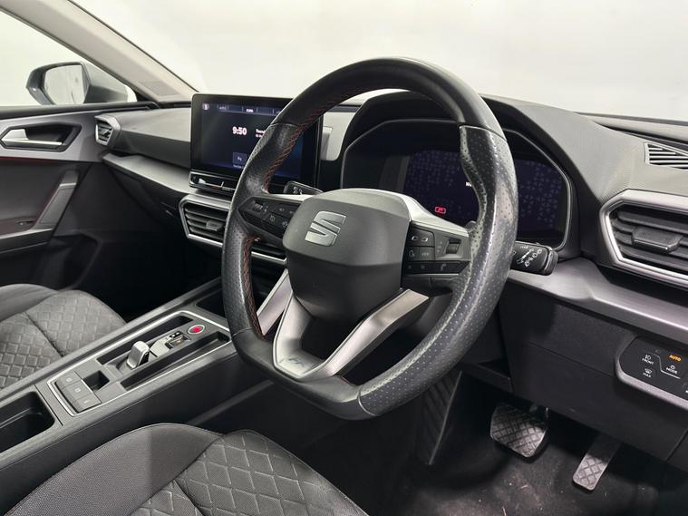 - Leather Flat Bottomed - Perforated Steering Wheel with Red Stitching and FR Logo