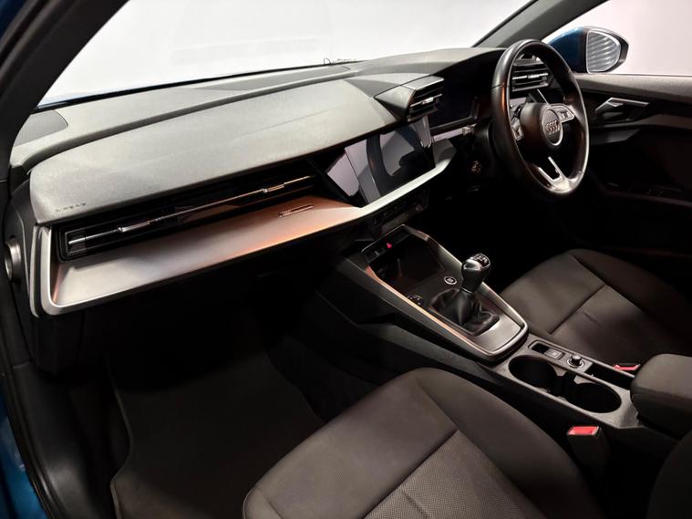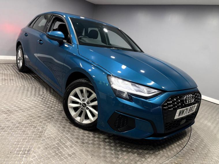 This Blue 2022 Audi A3 TFSI Technik 5 door manual is a superb example, having been owned by just one careful keeper. This stylish hatchback boasts a 1.0 litre Euro 6 compliant petrol engine, offering a blend of efficiency and performance. It comes equipped with a host of desirable features, including automatic headlights that activate with light and rain sensors, and LED headlights with distinctive LED daytime running lights, complemented by halogen lights at the rear. For your convenience, it includes a Bluetooth interface for seamless connectivity and manual air conditioning to keep you comfortable. Parking is made easier with rear parking sensors, and you'll appreciate the generous boot space for all your luggage.Part exchange welcome, finance available..