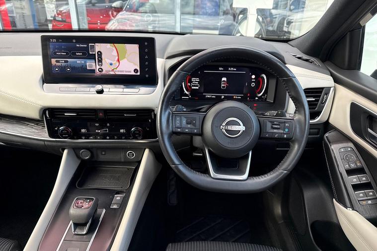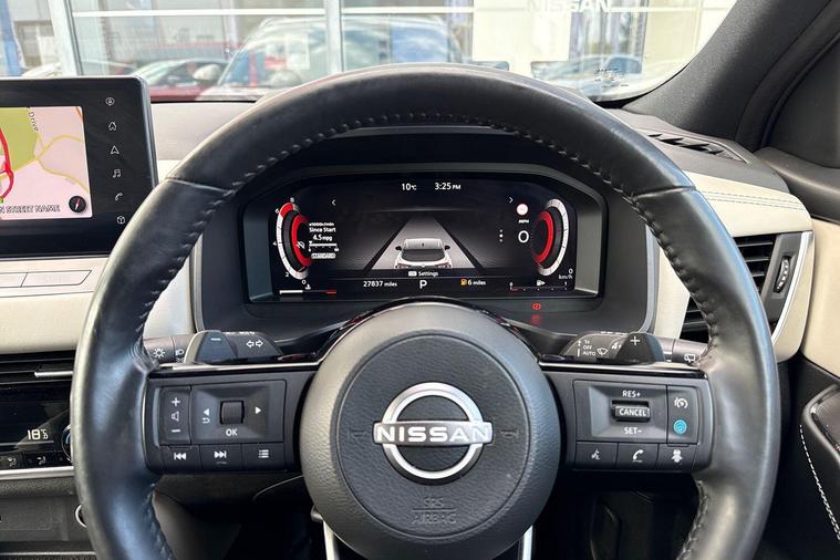 This 2022 Nissan Qashqai DIG-T Tekna boasts a full dealership service history and remains Nissan manufacturer approved, offering excellent peace of mind. This Euro 6 compliant 1.3L Petrol Hybrid model has had only one owner and its MOT is valid until September 2026. It comes equipped with an Advanced Windscreen Head Up Display, front and rear parking sensors, a rear view camera, Intelligent Blind Spot Intervention, and an Intelligent Around View Monitor for comprehensive driver assistance.The Qashqai Tekna is designed for practicality and ease of use, featuring a large boot space perfect for families or those needing extra room. Its low insurance group rating also indicates it is more economical to run compared to similar vehicles. The last service was completed on 2025-11-20 at 25, 434 miles, further underscoring its well maintained condition..