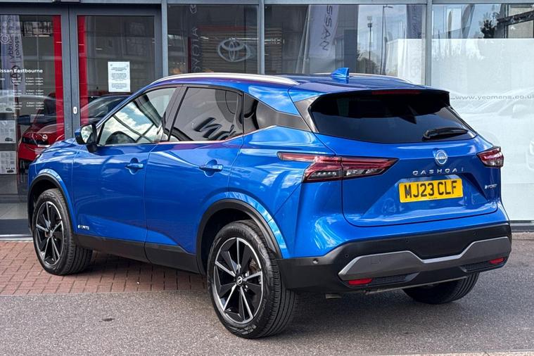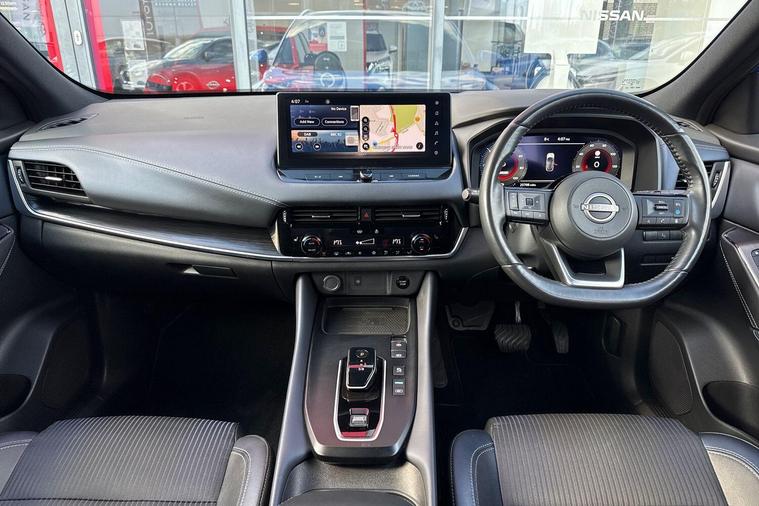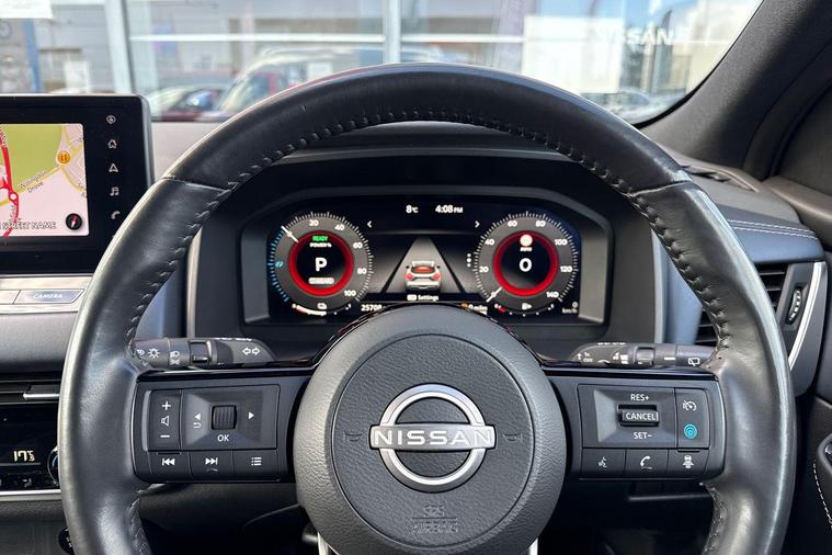 This 2023 Nissan Qashqai h e-POWER Tekna boasts full dealership service history and remains Nissan manufacturer approved, with its MOT valid until March 2027. This single owner vehicle, with its 1.5L petrol hybrid engine, has only covered 16, 742 miles, with its last service completed on 13 February 2025. It features advanced technology such as an Advanced Windscreen Head Up Display, a Rear View Camera with parking assistance, and an Intelligent Around View Monitor offering 360 degree camera views. For comfort, it includes heated front seats, and for enhanced visibility, LED headlights with adaptive driving beam are fitted.The Qashqai Tekna offers a compelling blend of efficiency and performance, highlighted by its impressive 53 mpg fuel economy and low CO2 emissions, making it a more economical choice than many comparable vehicles. Its acceleration from 0-62mph in just 7.9 seconds demonstrates its responsive power. Furthermore, the generous boot space provides ample practicality for everyday needs and longer journeys, setting it apart from other vehicles in its class. This Euro 6 compliant model combines sophisticated features with a focus on sustainable driving..