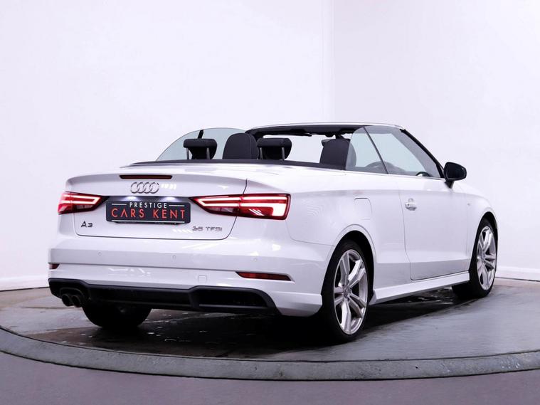 ⭐ Discover open-top driving at its finest with the Audi A3 Cabriolet 1.5 TFSI CoD 35 S line Convertible. This stylish convertible combines sporty performance with refined comfort, delivering a smooth yet responsive drive. With its sleek S line styling, advanced technology, and premium interior, every journey feels special—whether cruising through the city or enjoying the open road.⭐⭐ Some of the features we love about this car ⭐• ? 18in Alloy Wheels – Striking diamond-cut finish enhances sporty styling while improving road grip and driving stability.• ? Audi Connect – Provides real-time information, online services, and seamless connectivity for a smarter driving experience.• ⚙️ Audi Drive Select – Adjust driving modes to suit your style, balancing comfort, efficiency, and sporty performance.• ? Audi Smartphone Interface – Integrates your smartphone for apps, calls, and music directly through the car’s display.• ? Cruise Control – Maintains steady speed on long journeys, improving comfort and fuel efficiency on motorways.• ? MMI Navigation (SD Card) – Reliable navigation system offering clear directions and route guidance for stress-free travel.• ?️ MMI Radio Plus (7in Screen) – Retractable colour display delivers media, radio, and system controls with intuitive functionality.• ? Rear Parking Sensors – Alerts you to obstacles behind, making reversing and tight parking spaces easier and safer.• ? Storage Package – Additional compartments and clever storage solutions enhance practicality for everyday use.☎️ 01689242905? Submit an enquiry if you’d prefer to discuss over emailAt Prestige Cars Kent, we offer more than just quality vehicles. When you buy from us, you receive a 90-day guarantee, nationwide delivery, and the peace of mind that comes with a 175-point quality check. We ensure all our vehicles meet the highest standards before leaving the lot.⭐ Admin fee applies. Please confirm all specifications, as they are autogenerated ⭐.