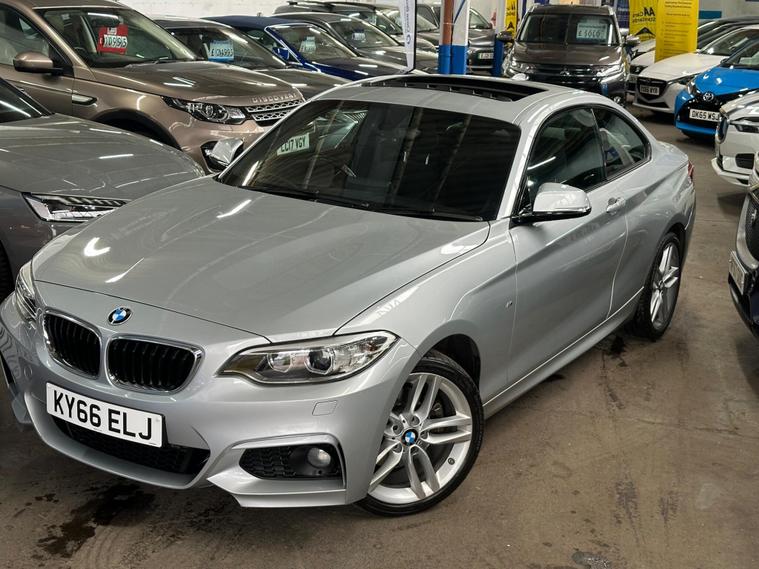 Boasting a single owner from new and remarkably low mileage for its age, this 2016 BMW 2 Series 220i M Sport presents a superb ownership proposition. This Euro 6 compliant model features a responsive 2.0L petrol engine and is presented in the desirable M Sport trim. Provenance is further assured with a clear vehicle history check and a 12 month MOT provided on purchase, alongside a 3 month warranty for your peace of mind. Inside, you will find a wealth of notable features designed to enhance your driving experience, including a Glass Sunroof with electric operation, Extended Lighting, an Interior Comfort Package, and Extended Storage solutions. The Enhanced Bluetooth Telephone Preparation with USB Audio Interface and Voice Control ensures seamless connectivity on the go.This BMW 2 Series 220i M Sport stands out with its impressive fuel economy of 48 mpg, making it an economical choice for your daily journeys. Its low CO2 emissions and low insurance group also highlight its cost effectiveness compared to similar vehicles. With only 55538 miles on the clock and a recent service completed on 2026 04 03, this car has been meticulously maintained and is ready for its next owner..