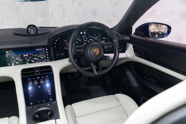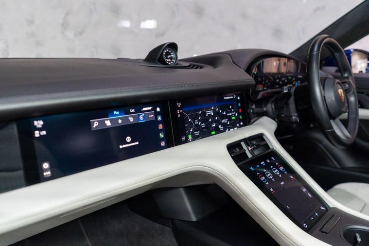VAT Q - This particular example is finished in Gentian Blue metallic paintwork with Chalk/Black leather interior. It benefits with a FULL Porsche service history and will come with a 12 month warranty which can be used at Porsche.The high specification of this Porsche includes:- Passenger Display- Head Up Display- Adaptive Cruise Control- Fixed Glass Panoramic Roof- ParkAssist Including Surround View- Sport Chrono Package- Power Steering Plus- Comfort Access- Side Airbags in Rear Compartment- 150kW DC On-Board Booster- 4+1 Seats System- Electrically Folding Exterior Mirrors- Powered Charging Port Cover- Windscreen with Grey Top-Tint- Side Window Trims - Black High Gloss- HomeLink - Garage Door Opener- Privacy Glass8.9% Low rate finance packages available, HP available, LP available, ****Apply for finance on our website for an instant decision****, 5 days driveway insurance available.Take advantage of our full bespoke in house detailing package to suit your needs, inclusive of Paint Protection Film (XPEL), Paint Correction, Nano Ceramic Coating, Trackers, Immobilisers and Bodykits. All of our work can be found on our social media Instagram @blackstonemotorsuk & @limitlessdetailinguk.