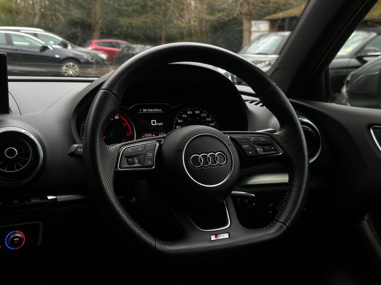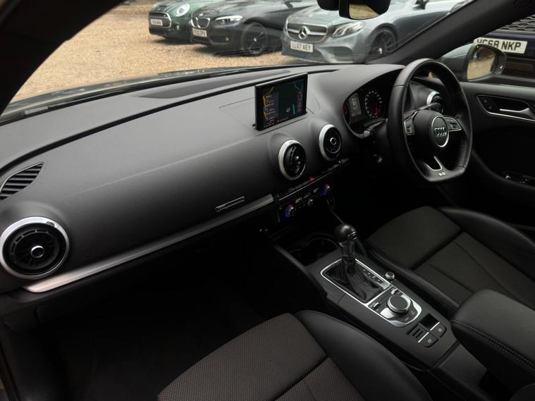 WILL COME WITH A FRESH SERVICE , MOT AND A FULL ''AA'' MECHANICAL INSPECTION BEFORE SALE, This 2019 Audi A3 TFSI S line presents an exceptional opportunity with its remarkably low mileage of just 33, 500 miles. This Euro 6 compliant 1.5 litre petrol model, finished in the sporty S line trim, offers a refined driving experience. It comes equipped with practical features such as rear parking sensors to aid manoeuvring, and an auto dimming rear view mirror that works in conjunction with the automatic headlights and rain sensor for enhanced visibility. Inside, you'll appreciate the dual zone electronic climate control, ensuring comfort for all occupants, and the convenience of a Bluetooth interface for seamless connectivity.The Audi A3 TFSI S line also boasts striking LED headlights with dynamic rear indicators, adding to its modern aesthetic. With a fuel economy of 44 miles per gallon, this vehicle offers an efficient choice for your motoring needs, further complemented by its low CO2 emissions. These highlights demonstrate how this particular Audi A3 stands out from others in its class, offering a compelling combination of style, technology, and economy..