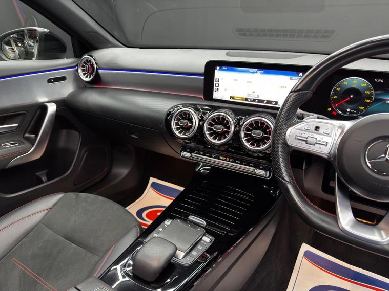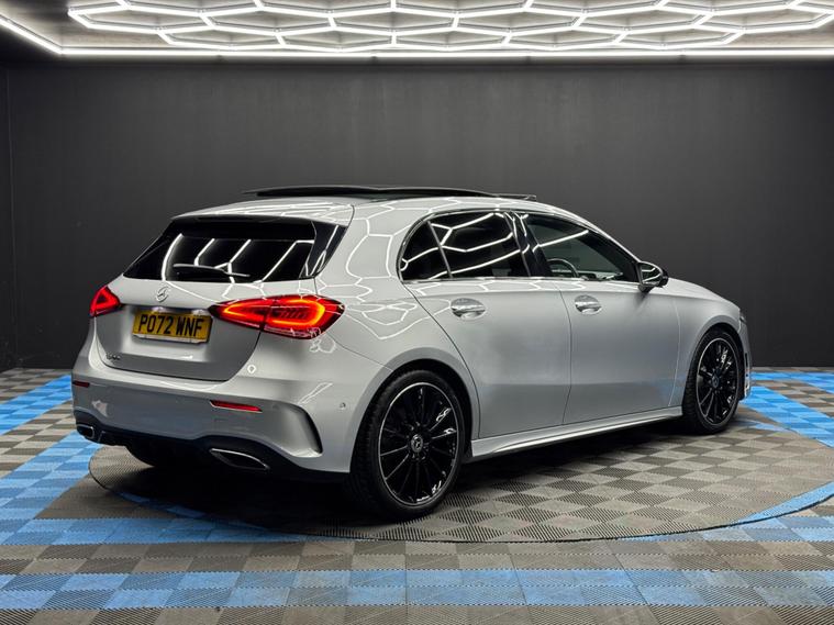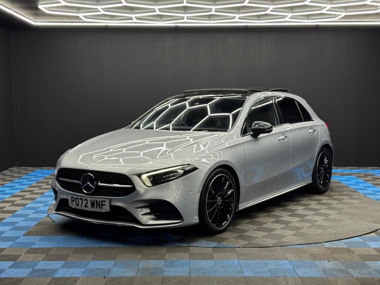 Here at Motor Gurus we are delighted to offer a Mercedes-Benz A Class 1.3 A200 AMG Line Night Edition (Premium Plus) 7G-DCT. This vehicle is in very good condition when taking into consideration the vehicle's age and mileage. This specific vehicle is finished in a METALLIC SILVER and is contrasted by a BLACK LEATHER/SUEDE interior. This vehicle comes included with: FRONT & REAR PARKING SENSORS, REAR PARKING CAMERA, PRIVACY GLASS, SLIDING GLASS PANORAMIC ROOF, FRONT HEATED SEATS, PERFORATED GRIPPED LEATHER STEERING WHEEL, CRUISE CONTROL, AUTOMATIC HEADLIGHTS, DIGITAL COCKPIT, TWIN CUPHOLDERS, DRIVING MODES, CLIMATE CONTROL, SAT NAVIGATION, DAB RADIO, BLUETOOTH AUDIO, TELEPHONE CONNECTIVITY, APPLE CARPLAY, AMBIENT LIGHTING, LANE KEEPING ASSIST, SPEED LIMIT ASSIST, ATTENTION ASSIST, TYRE PRESSURE MONITORING AND MUCH MORE! Our Mercedes-Benz A Class 1.3 A200 AMG Line Night Edition (Premium Plus) 7G-DCT has come to us with FULL SERVICE HISTORY, 2 KEYS and is a 1 FORMER KEEPER (2 owners) FROM NEW! We will also provide a 12 MONTH MOT and a FRESH OIL SERVICE before it leaves our premises (OTR)..