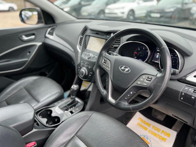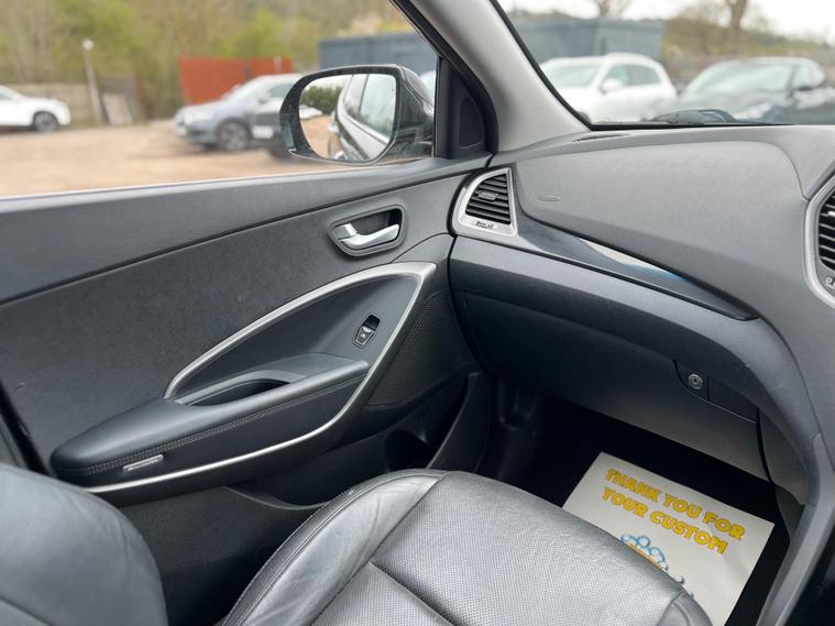 Discover this 2015 Hyundai Santa Fe CRDi Premium SE, a versatile and well equipped seven seater. This Four Wheel Drive model boasts a powerful 2.2 litre diesel engine, offering a compelling blend of performance and efficiency. Inside, you'll find the convenience of Keyless Entry and an Engine Start Stop button, alongside a Dual Zone Climate Control system to ensure comfort for all occupants. The Premium SE trim also features a stunning Panoramic Sunroof, perfect for enjoying the open sky, and a Rear View Parking Camera with Parking Guidance System, complemented by Front Parking Sensors for effortless manoeuvring.This Hyundai Santa Fe is designed for practicality and ease of use, highlighted by its generous boot space, making it ideal for families and those who need ample room for luggage or shopping. Furthermore, its placement in a low insurance group means that running costs are kept to a minimum, offering excellent value. The combination of its advanced parking assistance features, including the rear camera and front sensors, and the spacious interior with seven seats, positions this Santa Fe as a superior choice for those seeking a capable and comfortable family vehicle..