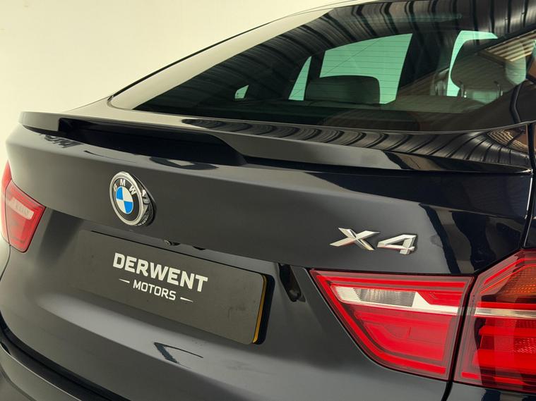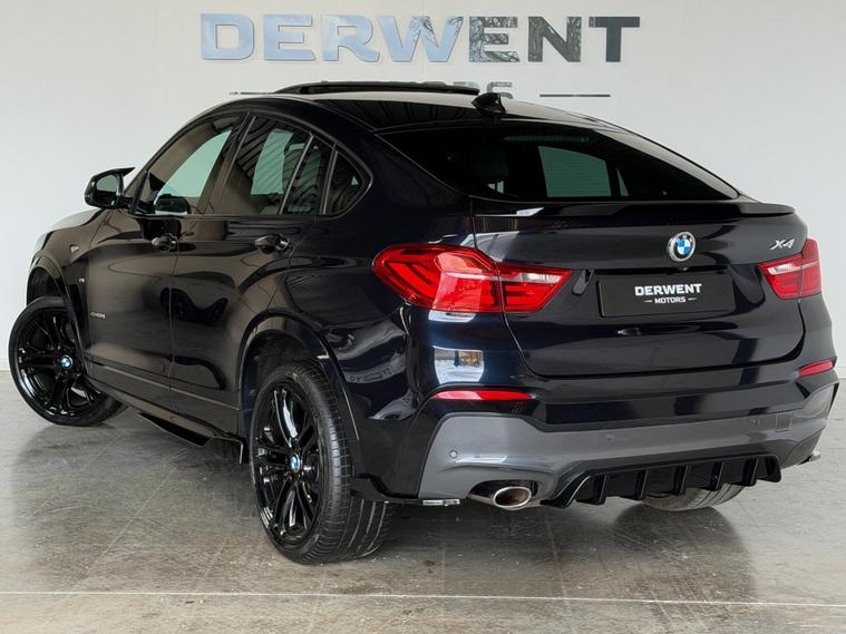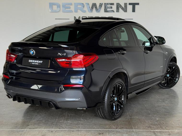 Welcome to Derwent MotorsWe are pleased to offer this exceptionally high-specification BMW X4 20d M Sport xDrive. This is a rare find on the market, combining a full stealth exterior with a unique interior along with the added sunroof. Finished in Metallic Carbon Black, it features a nice ambient feel with its ivory leather interior with Red stitching—a combination that truly sets this X4 apart from the standard models.Year/Reg: 2018 (18) | Plate: YH18 LSZMileage: 87, 000 milesEngine/Trans: 2.0d (190 ps) | Automatic | xDrive (4WD)Body: 5-Door SUV | Carbon Black | 3 OwnersThis X4 has been professionally enhanced with a full Gloss Black Aero Styling Package. Between the aggressive styling, the massive factory spec, and the xDrive all-wheel-drive system, it offers the perfect blend of presence and practicality. It comes with a Full Service History and will be supplied with a long MOT.Key Highlights:Rare Specification: Features a factory Electric Glass Sunroof and Head-Up Display.Custom Aesthetics: Full Gloss Black Aero Kit (Splitter, Diffuser, Spoiler, Grilles, and M-Mirrors).Upgraded Wheels: 20'' Gloss Black alloys perfectly contrasted by Red brake calipers.Premium Interior: Cream leather with Red contrast stitching, Heated Sports Seats, and Ambient Lighting.Technology: Media Package - BMW Professional (Widescreen), Reversing Camera, and Wireless Phone Charging.Efficiency: Despite its size and 4WD grip, it returns an impressive 54 mpg.This is a stand-out retail example that has been maintained to a high standard. It is fully ULEZ compliant and ready to go.Vehicle Summary:✔ Long MOT✔ Full Service History✔ Rare Sunroof, Head-Up Display and Extended body styling✔ xDrive Four-Wheel Drive✔ ULEZ Compliant✔ HPI ClearWe are proud to be an AutoTrader Highly Rated Dealer.? 01332462741 ? sales dealer's website Derwent Motors – Honest. Award-Winning. Making Car Buying Easy..