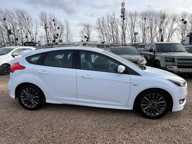 Boasting a history of just two careful owners, this 2018 Ford Focus T ST Line presents a compelling proposition. Powered by an efficient 1.0 litre petrol engine, this Euro 6 compliant model offers a remarkable fuel economy of 58 miles per gallon, making it an economical choice for your daily journeys. The ST Line trim ensures a sporty aesthetic, complemented by manual air conditioning for your comfort. With 12 months MOT provided on purchase and a 3 month warranty, you can drive away with confidence.This Ford Focus is designed to impress, offering a blend of performance and practicality. Its acceleration from 0 to 62 miles per hour in just 10.4 seconds demonstrates its responsive nature. Furthermore, its low CO2 emissions are better than many similar vehicles, contributing to a lower environmental impact. The generous boot space provides ample room for shopping, luggage, or sports equipment, making it a versatile companion for any lifestyle..