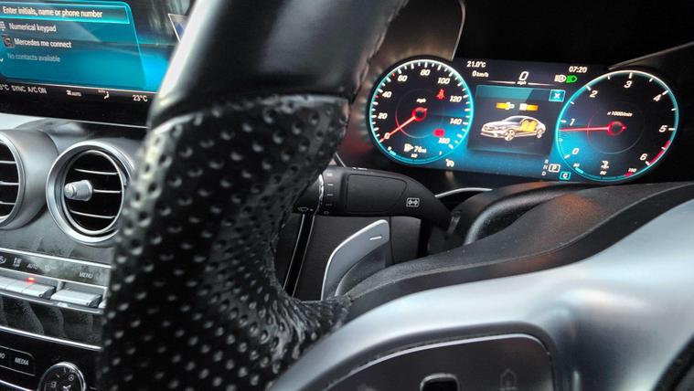 - Steering Wheel - 3-Spoke Multi-Function AMG in Leather with Flattened Bottom Section - Chrome Inserts and Perforated Leather in Grip Area