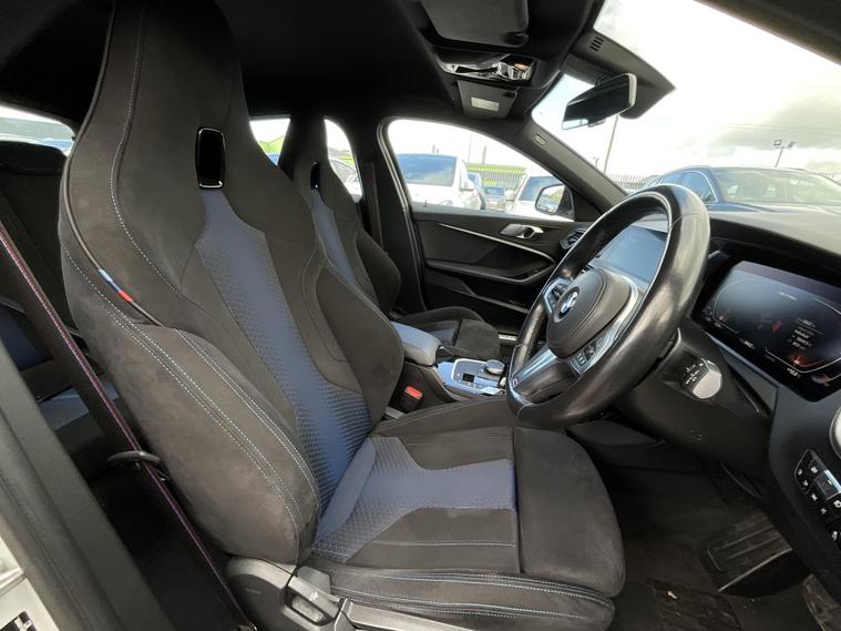 This 2022 BMW 1 Series M135i offers an exceptional driving experience, boasting a powerful 2.0 litre petrol engine and a sophisticated four wheel drive system. As a Euro 6 compliant vehicle, it meets modern emissions standards, ensuring efficiency alongside performance. This particular model also features a generously sized boot, providing ample practicality for everyday use and longer journeys.The M135i variant is engineered for exhilarating performance, evidenced by its impressive 0 to 62 miles per hour acceleration time of just 4.8 seconds. This rapid acceleration demonstrates its capability and positions it as a standout choice within its class, offering a dynamic and responsive drive that surpasses many other vehicles..