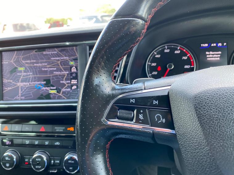 - Steering Wheel - Flat-Bottomed Perforated Leather with Red Stitching and FR Logo