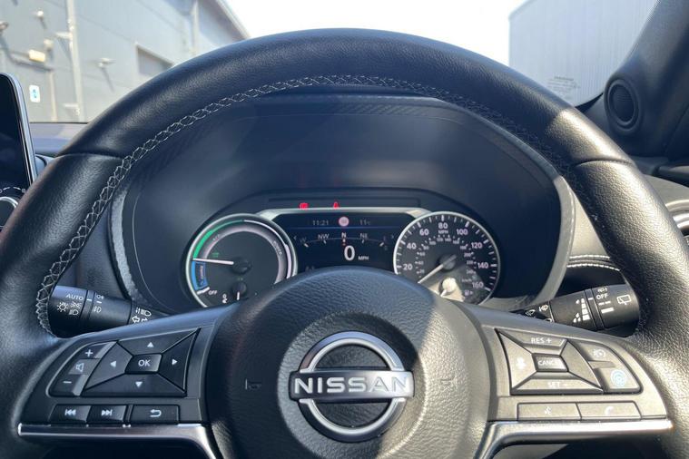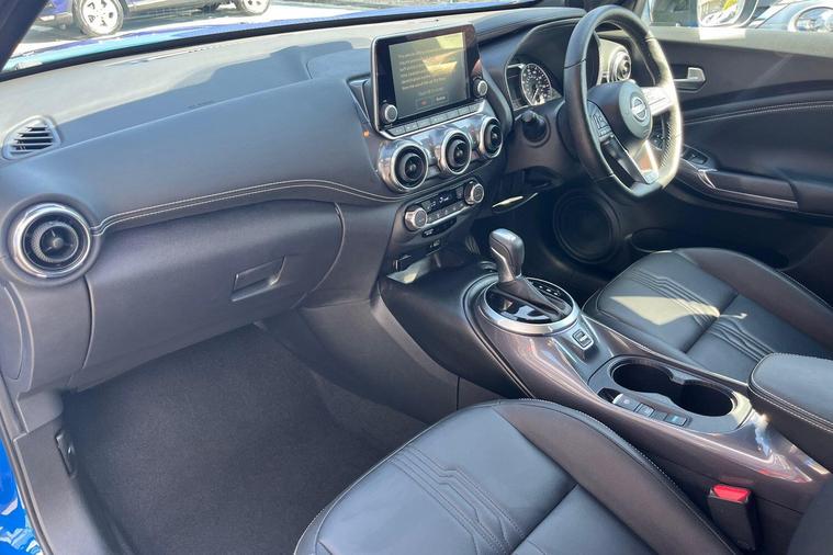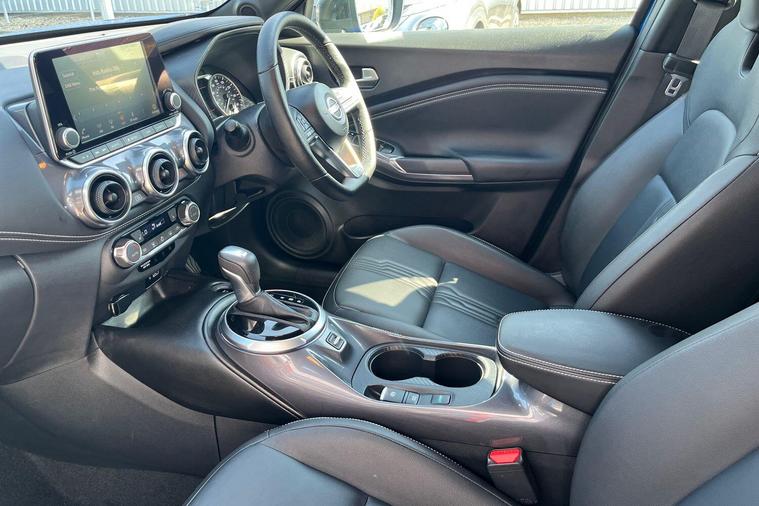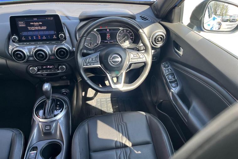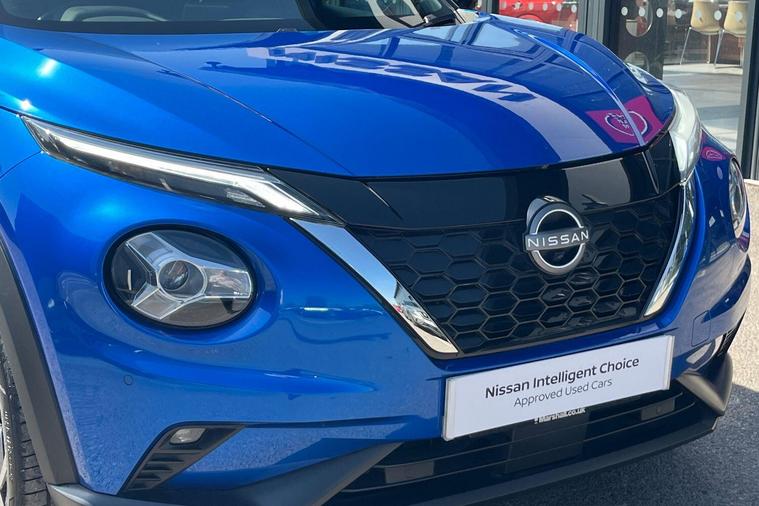This 2023 Nissan Juke Tekna presents an exceptional opportunity with its remarkably low mileage of just 6705 miles. As a Nissan manufacturer approved vehicle, this 1.6L Petrol Hybrid model, adhering to Euro 6 emissions standards, offers a blend of efficiency and modern technology. It features convenient Intelligent Key functionality with walk away lock and approach unlock, alongside seamless integration for Apple CarPlay and Google Android Auto, enhancing your driving experience.The Juke Tekna stands out with its impressive fuel economy, achieving a highlight of 55 mpg, which indicates it is more economical than many similar vehicles. Furthermore, its low insurance group and low CO2 emissions highlight its cost effectiveness and environmental consideration, making it a sensible choice for a wide range of drivers..