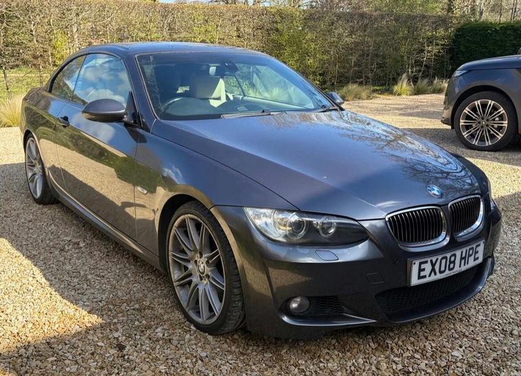 This 2008 BMW 3 Series 335i M Sport is a remarkable find, having been cherished by just one owner from new with a clear vehicle history check. A very rare find with fully functional features of covertible roof + Leather Heated Seats + Sat Nav and many more options.. the owner upgraded to a larger car so this has to to go.. A fresh MOT will be carried out along with all avisory work from previous MOT + A fresh service + 6 months FREE WARANTY.. This particular model boasts the desirable M Sport trim and is powered by a potent 3.0L petrol engine, delivering an impressive 0-62mph in just 6.0 seconds. It comes equipped with a suite of premium features, including 19in Light alloy double Spoke Wheels Style 225 M, SatNav Professional for effortless navigation, and Front & Rear Parking Distance Control with a front camera to aid manoeuvring. Inside, you'll appreciate the comfort of Heated Front Seats and the convenience of a USB & Audio interface.The appeal of this 335i M Sport is further enhanced by its low insurance group, making it a more economical choice than many comparable vehicles. The combination of its exhilarating acceleration, sophisticated M Sport styling, and the comprehensive list of factory fitted options clearly sets this BMW apart. This is a well maintained example that offers a compelling blend of performance, luxury, and practicality.We offer | 6 Months FREE WARRANTY | Part Exchange | UK wide Delivery | Accepts Credit/debit Cards (t&c applied) | If you want any additional information, please contact us. For more stock please visit our website dealer's website