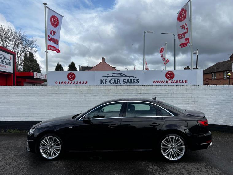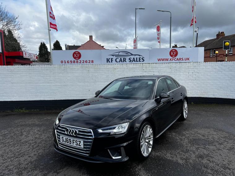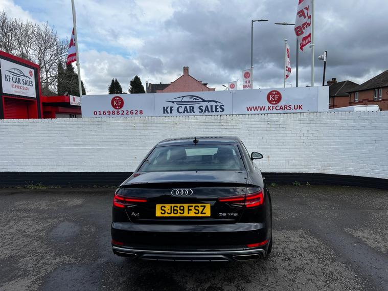 This 2019 Audi A4 TFSI S line offers a superb blend of style and efficiency, making it a standout choice. Powered by a 2.0 litre petrol engine and meeting Euro 6 emissions standards, this model is equipped with striking 19 inch alloy wheels in a turbine design, a Bluetooth interface for seamless connectivity, and advanced LED headlights and rear lights with dynamic indicators. For added convenience and safety, it features Parking System Plus with front and rear sensors, and for your comfort, the front seats are heated.This Audi A4 TFSI S line is designed to be economical to run, boasting a low CO2 emission rating and falling into a low insurance group. These factors indicate that this vehicle is a more cost effective option compared to many other similar cars on the market, offering you peace of mind and savings on your motoring expenses..
