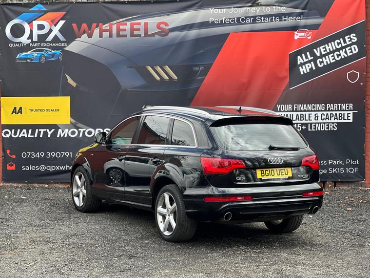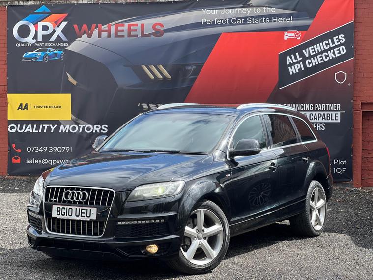 QPX Wheels are pleased to offer this well-presented Audi Q7 S line, combining strong V6 diesel performance with quattro all-wheel drive and a smooth automatic gearbox — a solid, practical 7-seat SUV with real road presence.4. OwnersHPI ClearService History2 Remote KeysS line exterior styling3.0 TDI V6 enginequattro all-wheel driveTiptronic automatic gearboxHalf leather / leather S line interiorDual-zone climate controlFront & rear electric windowsISOFIX pointsMultifunction steering wheelAlloy wheels7-seat configurationLarge boot capacityComfortable driving position with elevated road viewDue to high demand, early booking of viewings is recommended. Arrange yours via our website https:/ dealer's website or by calling +44 (0)7349390791Our friendly team will look after you before, during and after the sales. We will help you with taxing the vehicle, completing official forms, and we will make sure that you, your family and loved ones are safe on the road. We also offer a wide range of warranties and finance to meet your needs. WHO WE AREWe are a car dealership with 16 years of experience, based in Clarence Street, Stalybridge, SK15 1QF. We are 100% sure that we can find you the right vehicle as we offer over 150 cars for sale at any time. OUR QUALITY PROMISE- Every car comes with our FREE 3 Months warranty- We offer a fresh MOT for all vehicles due for one within the next 3 months. - All our vehicles are HPI Clear and undergo a 39-Point check, conducted by professional inspectors. - Every vehicle is valeted and sanitised to a high standard. - We are able to offer delivery nationwide at competitive prices, don't hesitate to contact us for a quote.FINANCE, PART EXCHANGE OR A STRAIGHT PURCHASE IS AVAILABLE. QPX Wheels Team.https:/ dealer's website