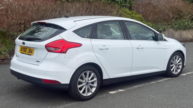 This 2016 Ford Focus T Titanium boasts a clear vehicle history, offering peace of mind for its next owner. This well maintained example, with only two previous owners, is powered by an efficient 1.0 litre petrol engine and meets Euro 6 emissions standards. Inside, you'll find dual zone electronic automatic air conditioning for personalised comfort, a Bluetooth handsfree system for seamless connectivity, and rear parking sensors to assist with manoeuvring.With an impressive fuel economy of 60 miles per gallon, this Focus is designed to be economical to run, a fact further supported by its low CO2 emissions which indicate it is better than many similar vehicles. The generous boot space ensures practicality for everyday needs and longer journeys, making this Ford Focus T Titanium a sensible and well equipped choice..