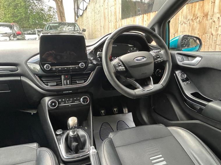 This 2018 Ford Fiesta ST-Line X is a superb example, having had only two owners from new. It boasts a responsive 1.0 litre petrol engine and meets Euro 6 emissions standards. This ST-Line X trim level comes equipped with a useful NCAP Pack, which includes automatic headlights that turn on and off by themselves, as well as automatic high beam functionality. Inside, you'll find electronic automatic temperature control for effortless climate management and the Ford Navigation System with Ford SYNC 3, offering seamless integration with Apple CarPlay and Android Auto for your smartphone.Experience impressive efficiency with this Fiesta, achieving a remarkable 58 miles per gallon, which is better than many similar vehicles. Its low CO2 emissions also contribute to its economical running costs. For those who appreciate performance, it accelerates from 0 to 62 miles per hour in just 10.0 seconds, demonstrating a pleasing blend of efficiency and spirited driving..
