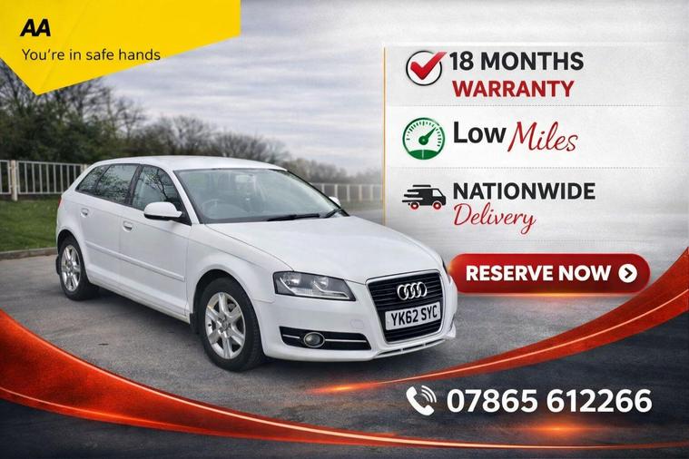 +++ Please contact us before your visit, For sale, Finance, delivery or Part exchange, reserving and test driving call us on 01282385409+++, This 2012 Audi A3 TDI SE offers exceptional value with its remarkably low mileage of just 76, 000 miles, especially considering its age. This well maintained example comes with a full service history, with its last service completed on 03 March 2026 at 76, 000 miles. It is presented with 12 months MOT provided on purchase and benefits from an 18 month warranty for your peace of mind. The 1.6L diesel engine is paired with the SE trim, and you can enjoy the comfort of air conditioning.The Audi A3 TDI SE stands out with its impressive fuel economy, achieving an outstanding 69 mpg, which is a significant advantage for running costs. Furthermore, its low insurance group rating means it is economical to insure, and the large boot space provides excellent practicality for everyday use and longer journeys. These highlights demonstrate how this particular Audi A3 offers a superior ownership experience compared to other vehicles in its class..