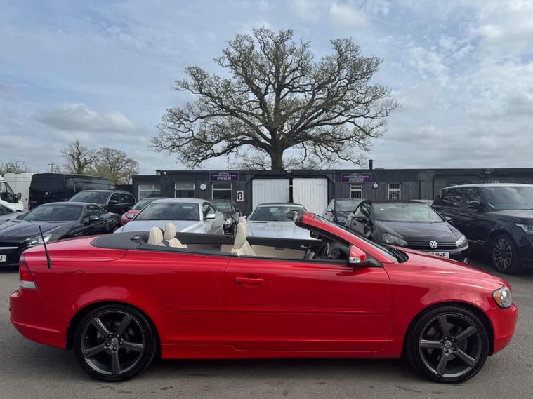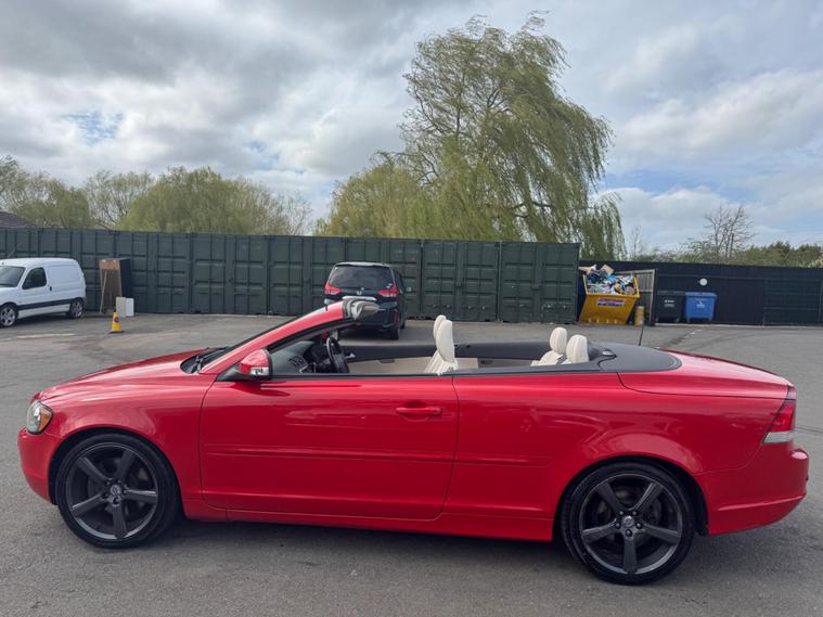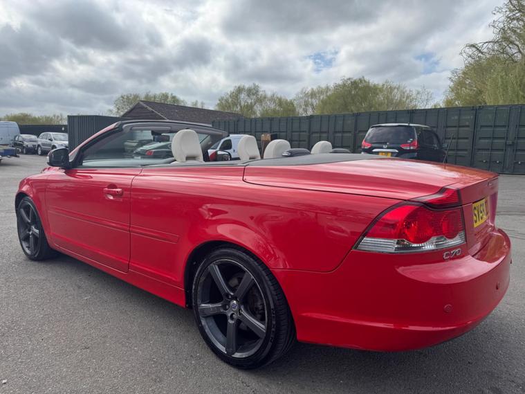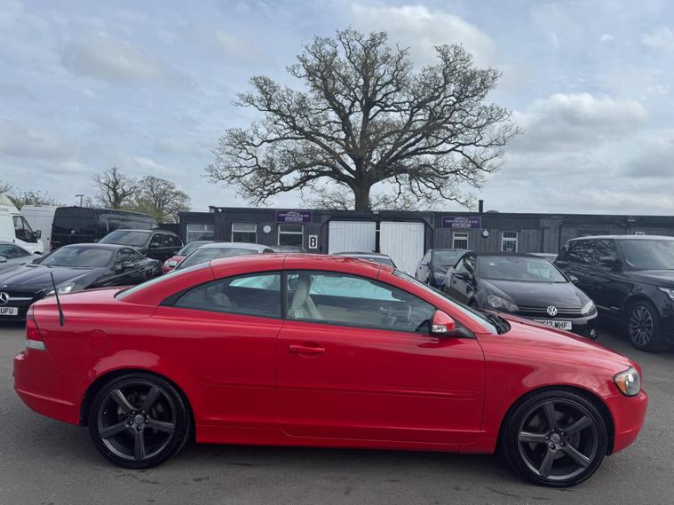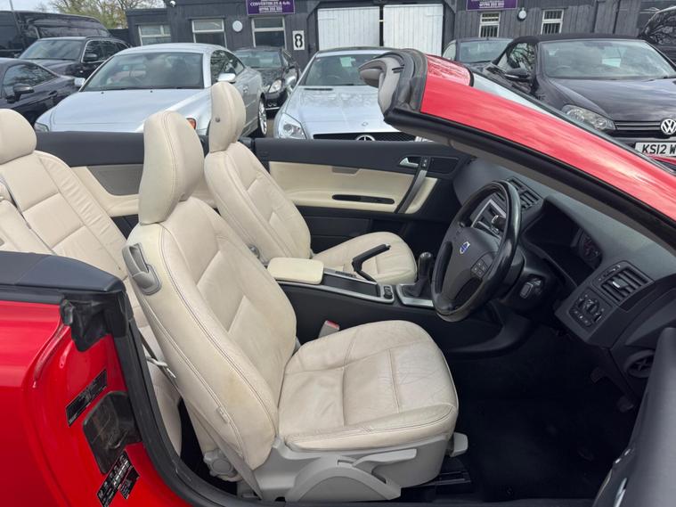THIS Volvo C70 2.0D S Convertible 2dr Diesel Manual (161 g/km, 134 bhp) QUITE RARE NOW & IT LOOKS AMAZING IN THE BEST COLOUR COMBINATION FERRARI RED AND CONTRASTING IVORY FULL LEATHER HEATED SEATS AND IT LOOKS AMAZING WITH THE ALUMINIUM TRIM TO THE DASH AND DOOR CARDS YES VERY SMART. THE LAST OWNER HAS LOVED THE CAR FOR OVER 6 YEARS YOU CAN TELL THAT BY THE GREAT CONDITION THE CABRIOLET IN YES AND IT'S REALLY GOOD MILEAGE FOR THE YEAR 103K A GREAT FULL SERVICE HISTORY & SERVICED AS SOON AS IT ARRIVES 14 SERVICES IN THE SERVICE BOOK THE CAR COMES WITH SOME FACTORY EXTRAS, FACTORY POWER FOLD CONVERTIBLE ROOF, .STEREO SYSTEM WITH CD MUTI-CHANGER, DUAL ZONE CLIMATE CONTROL AIR-CONDITIONING, REMOTE CONTROL CENTRAL LOCKING, CRUISE CONTROL, ZENON HEADLIGHTS, REVERSE PARKING SENSORS, 18 INCH GREY ALLOY WHEELS WITH GOOD TYRES THERE ARE 2 REMOTE CONTROL KEYS AND ALL THE BOOKS AND MANUALS. ALSO HAS A SPARE WHEEL.AND OVER HALF A TANK OF DIESEL MAY BE I SHOULD PUT THE PRICE UP HA HA This 2010 Volvo C70 D S IS presented with a clear vehicle history check, offering peace of mind for its next owner. This stylish convertible features a 2.0 litre diesel engine, combining efficient performance with the open top driving experience. The S trim level ensures a distinctive look, making this C70 stand out.The Volvo C70 D is designed for practicality as well as pleasure, boasting a generous boot space that is ideal for luggage or shopping. Furthermore, this model benefits from a low insurance group, which can help to keep running costs down. These factors combined indicate that this Volvo C70 offers excellent value and a more economical ownership proposition compared to many other vehicles in its class..