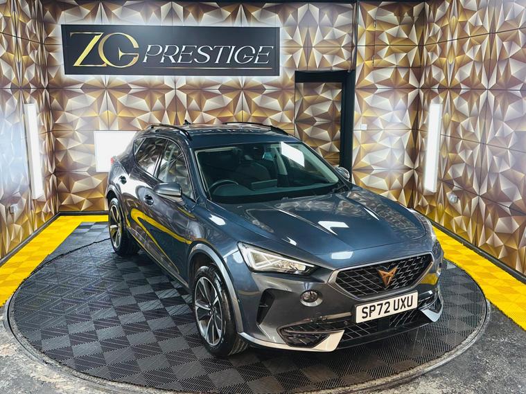 Buy with confidence at ZG Prestige. We are Highly Rated by Auto Trader, recognised as one of the Top 5 Car Dealerships in the UK by CarDealer, and proud to be AA Approved, FCA Regulated, and part of The Motor Ombudsman. With Excellent ratings across Google, eBay, Motors, CarGurus, and PistonHeads, we deliver a trusted service from the town’s largest indoor prestige showroom. Featured Vehicle: CUPRA Formentor 1.5 TSI V1 DSG Euro 6 (s/s) 5dr in Grey with Black Interior. Supplied with Comprehensive Service History. New Service and MOT Due Upon Sale. condition both inside and out. Our detailed inspection will include replacing any worn wear and tear items like Tyres and Brakes. Some of the Great Specification Includes Heated Steering Wheel, 360 Degree Parking Sensors, Black Part PVC – Part Cloth Plus So Much More. When you buy from ZG Prestige, on this vehicle you will receive a FREE 12-Months Premium Warranty with nationwide coverage, no limit on claims, direct payment to the repairing garage, and protection against mechanical and electrical faults. You can extend the warranty for up to 36 months. Every car also includes 12 months AA Breakdown Cover, a clear Experian HPI report, and a 120+ point pre-delivery inspection including a full computer scan report. We offer nationwide delivery, flexible low-rate finance (PCP & HP) with 0% deposit, unbeatable part-exchange prices, and a 14-day money-back guarantee for complete peace of mind. Virtual appointments are available via phone, WhatsApp, or video call—buy from home, hassle-free. Reserve today for just £99 (Completely refundable). Contact us 24/7 on WhatsApp at 01204219868 or visit dealer's website