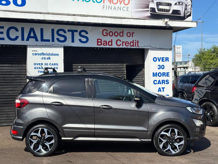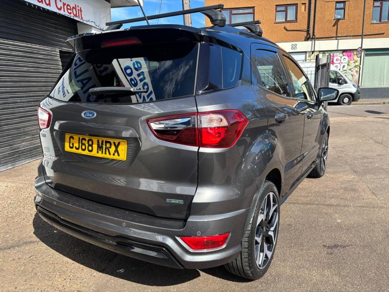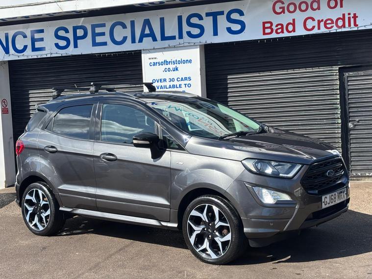 HERE WE HAVE ON SALE THE POPULAR FORD ECOSPORT 1.0T ECOBOOST ST LINE EURO6 5DR FINISHED IN GREY dealer's website WITH A LEATHER STEERING WHEEL, , 17IN ALLOY WHEELS - 5 SPOKE DARK TARNISH , CAPLES REFUELLING SYSTEM , FORD SYNC 3 NAVIGATION WITH 8IN TOUCHSCREEN , MYKEY , REAR VIEW CAMERA PACK , TYRE REPAIR KIT , TRIP COMPUTER, MULTIFUNCTIONAL STEERING WHEEL, ELECTRIC WINDOWS, ELECTRIC MIRRORS, TYRE PRESSURE MONITORING SYSTEM, AIR CONDITIONING, USB CONNECTION, AUX CONNECTION, 17 INCH ALLOY WHEELS, REMOTE CENTRAL LOCKING, X2 KEYS...................THIS VEHICLE COMES WITH CONSISTANT SERVICE HISTORY AND WILL BE SERVICED AT POINT OF SALE MEANING IT HAS BEEN MAINTAINED TO A HIGH STANDARD.................THIS VEHICLE PRESENTS IN EXCELLENT CONDITION AND DRIVES LIKEWISE..............VIEWING ESSENTIAL.................FINANCE AVAILABLE ON REQUEST, .