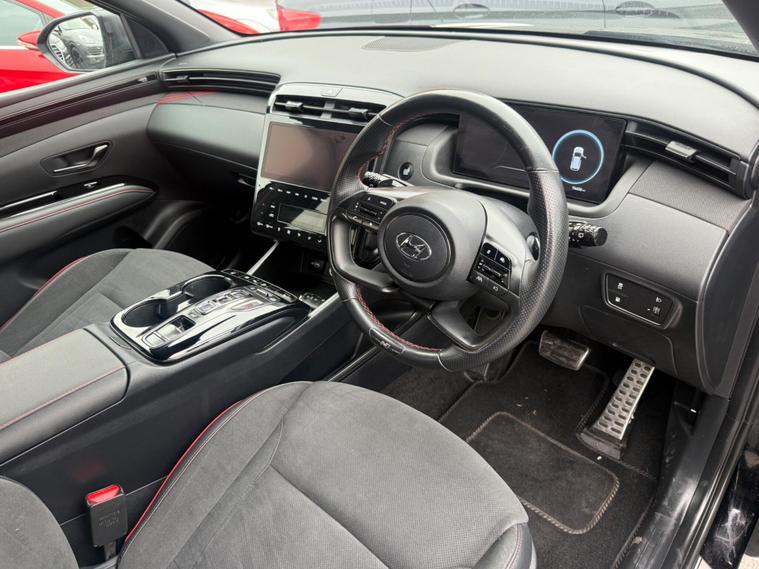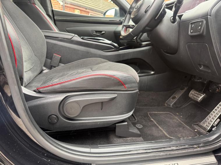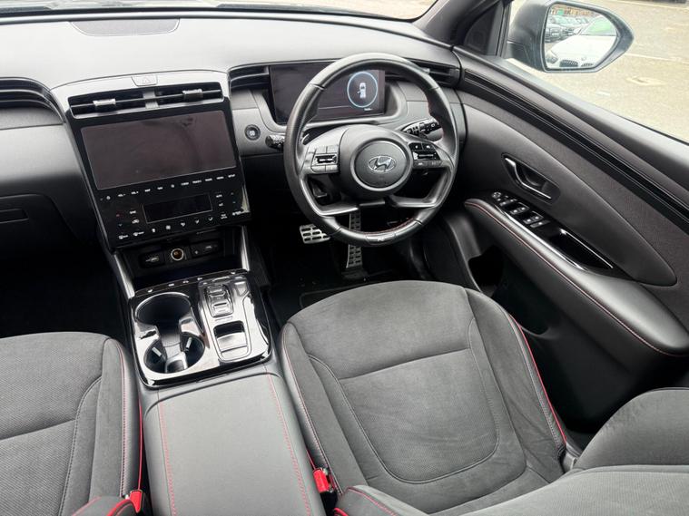 This 2022 Hyundai TUCSON T-GDi N Line is a superb example, having had only one owner since new. This Euro 6 compliant, four wheel drive model boasts a 1.6 litre petrol plug in hybrid engine, offering an efficient and capable driving experience. Inside, you'll find dual zone climate control to keep everyone comfortable, and heated front seats for those colder journeys. The N Line trim also includes automatic headlights with a dusk sensor, ensuring optimal visibility. For convenience, this TUCSON comes with both an ICCB cable for domestic power sockets and a charging cable for AC charging stations.The TUCSON T-GDi N Line stands out with its generous boot space, providing ample room for all your luggage or shopping needs. Furthermore, its low insurance group rating indicates that running costs are likely to be more affordable compared to similar vehicles. These highlights, combined with its advanced hybrid technology and four wheel drive capability, make this TUCSON a practical and appealing choice for a wide range of drivers..