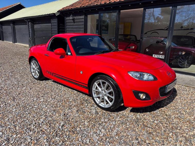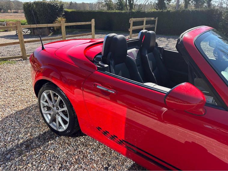 ONLY 37, 000 MILES ! FULL MAZDA/SPECIALIST SERVICE RECORDS+ RARE CHERISHED MX5 SPORT TECH FOLDING HARDTOP COUPE + GLEAMING TRUE RED+ FULL HEATED BLACK LEATHER + 6 SPEED+ CRUISE+ CLIMATE+ BLUETOOTH+ 17'' ALLOYS WITH MATCHING UNIROYAL TYRES RECENTLY FITTED+ BOSE HIFI+ PLEASE SEE OUR GOOGLE REVIEWS+ BEST CHOICE OF QUALITY LOW MILAGE MX5 IN THE UK'' ALL MX5 FULLY PREPARED SERVICED/MOTD+ MAZDA MX5 SPECIALIST OVER 25 YEARS.