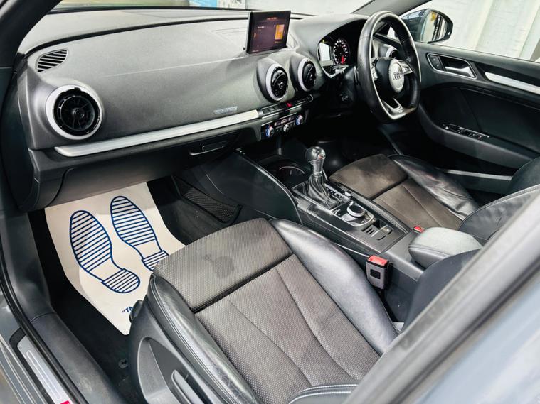 - Sequence Cloth-Leather - S Embossed Sports Seats - Black with Rock Grey Stitching