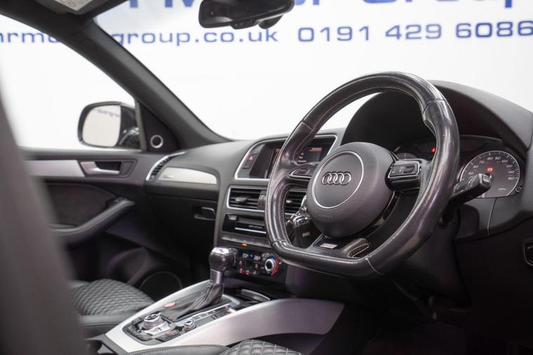 83, 291 miles, This Audi SQ5 BiTDI V6 Plus is a Euro 6 compliant model, offering a powerful 3.0L Diesel engine and Four Wheel Drive for confident handling. The Plus trim level ensures a premium experience, complemented by notable features such as Xenon headlights with automatic activation, an Audi Parking System Plus with front and rear sensors, and Deluxe 3 Zone Climate Control for personalised comfort.This SQ5 stands out with its impressive acceleration, reaching 0-60mph in just 4.9 seconds, demonstrating its performance capabilities. Its large boot space makes it a practical choice for families or those needing extra room for luggage or equipment. Furthermore, its low insurance group rating indicates that running costs are kept more manageable compared to similar vehicles. The 2400 kg towing weight also highlights its versatility for carrying loads or towing trailers.Please call our experienced sales team on 01914800597 for any additional specification queries, an in depth appraisal/ Video call or maybe we can help fund your new car. All our vehicles are prepared to the highest standards by our expert technicians in our fully equipped preparation centre as we're an AA approved dealer. Every car must go through a strict and thorough inspection, Items that require attention, mechanically or cosmetically are addressed prior to delivery. We offer a wide range of Finance and Warranty packages as well as fantastic trade rates for allow wheel refurbs/colour changes, window tinting and much more. All our vehicles are subject to a £199 service support fee and are therefore supplied with pre delivery service, 12 months MOT, 12 months AA breakdown cover and 6 months Auto Protect warranty that can be extended up to 24 month. All vehicles are HPI clear a full report can be supplied at point of sale. Home Delivery can be arranged throughout the UK. We welcome part exchanges and can tailor finance packages to suit you. See our latest stock on dealer's website