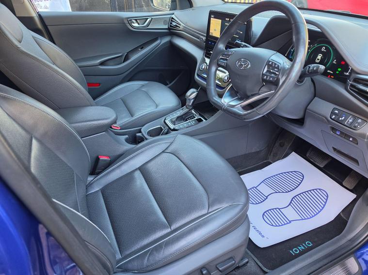 Discover this 2019 Hyundai IONIQ h GDi Premium SE, a well maintained example that offers an exceptional blend of efficiency and technology. This model boasts a 1.6 litre petrol hybrid engine, meeting Euro 6 emission standards, and comes in the Premium SE trim. Inside, you'll find a host of convenient features designed to enhance your driving experience, including a wireless phone charging pad, Apple CarPlay and Android Auto for seamless smartphone integration, and a rear view parking camera with a parking guidance system to make manoeuvring effortless. Multifunction- steering wheel, 2 remote keys, cruise control, full leather seats, heated sests, Automatic headlights with a dusk sensor ensure optimal visibility in varying light conditions.This Hyundai IONIQ stands out with its impressive fuel economy, achieving an excellent 61 miles per gallon, which is significantly better than many other vehicles in its class. Its low CO2 emissions also contribute to a more environmentally friendly drive. Furthermore, this model benefits from a low insurance group, making it an economical choice for many drivers. You'll also appreciate the generous boot space, offering ample room for luggage or shopping, further enhancing its practicality for everyday use.** finance available ** extended warranty available ** nationwide delivery available **Part exchanges are available upon request **** welcome to view/ test drive/ inspection **** viewings by appointments only **.